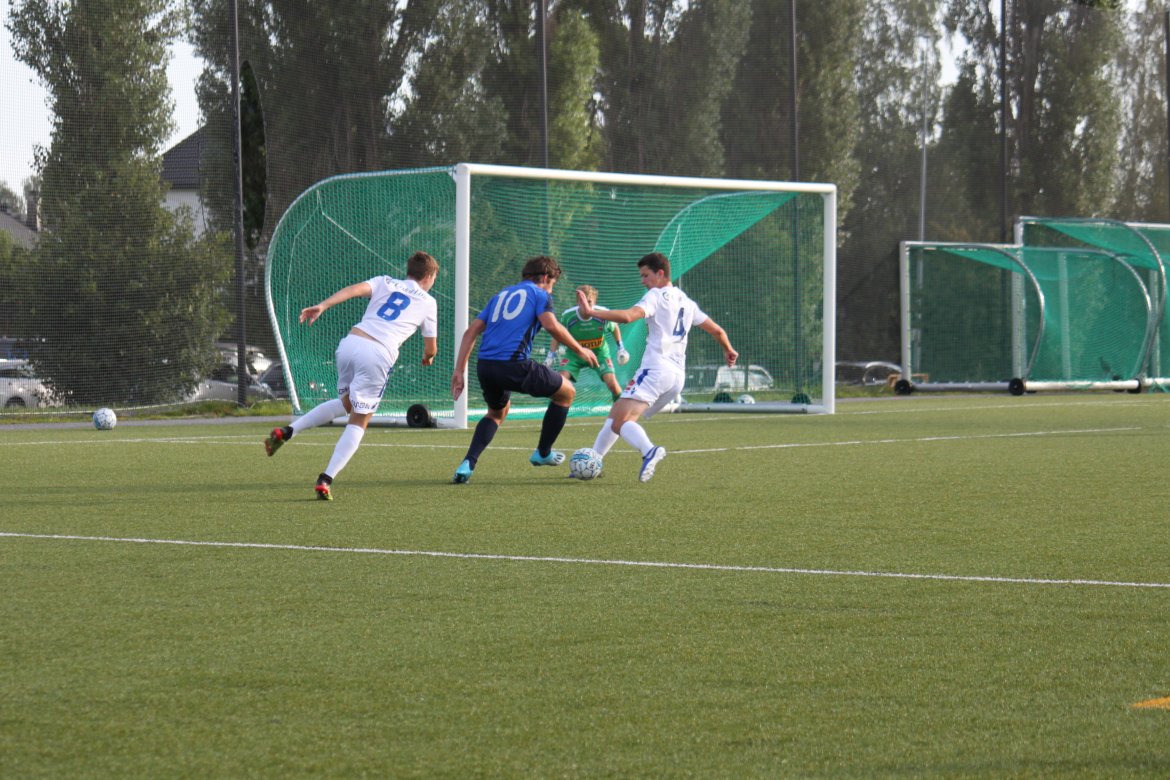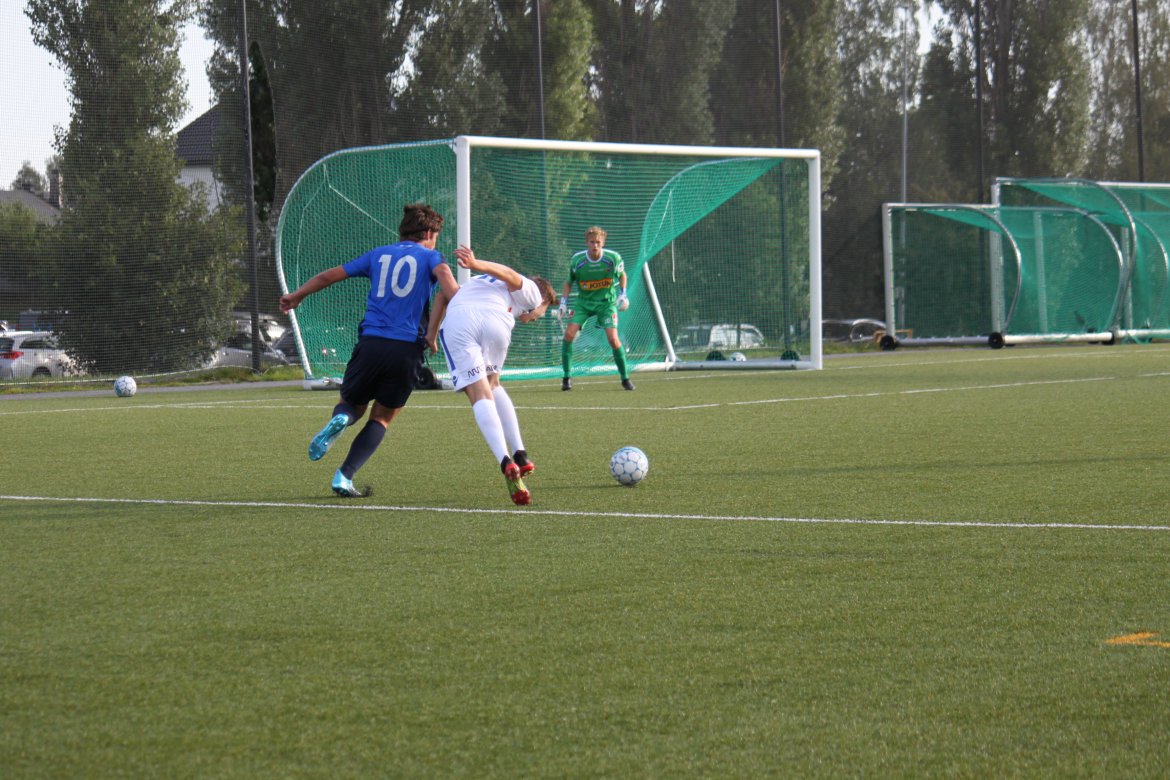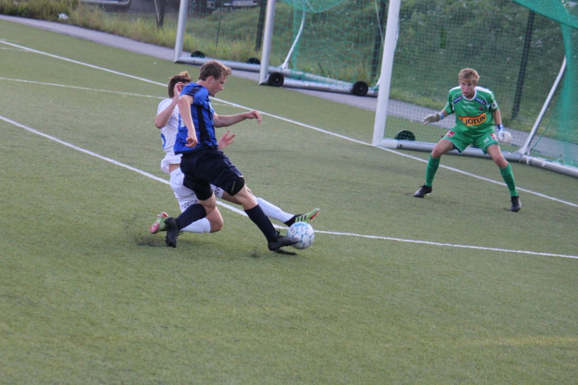 2-0: 39 min. Marius blir felt for andre gang inne i feltet. Begge gir straffe. Den første redder keeper, men nummer to setter Oliver i mål.