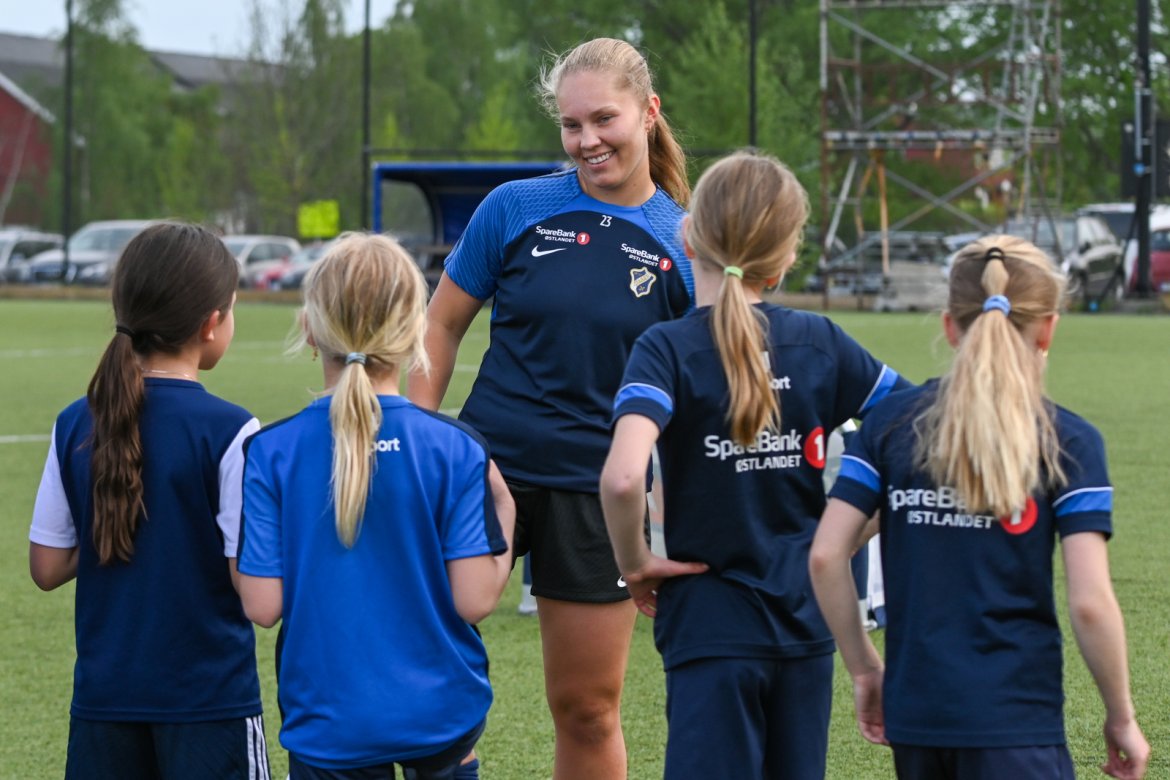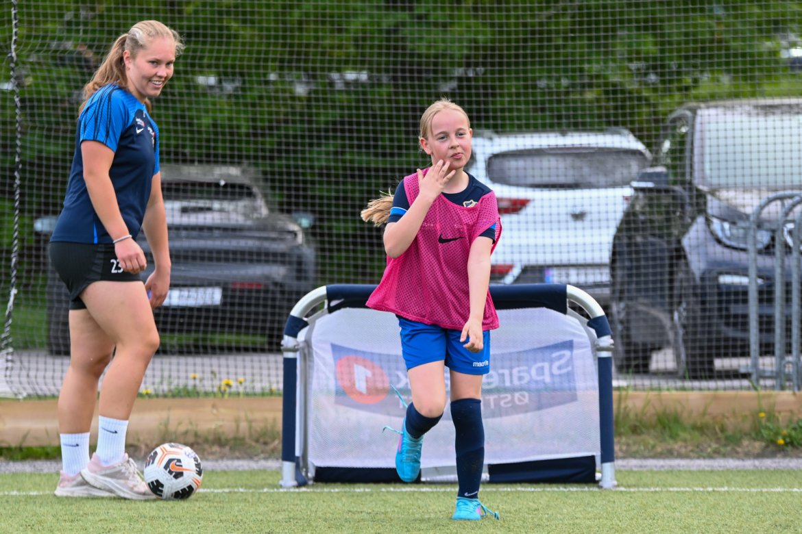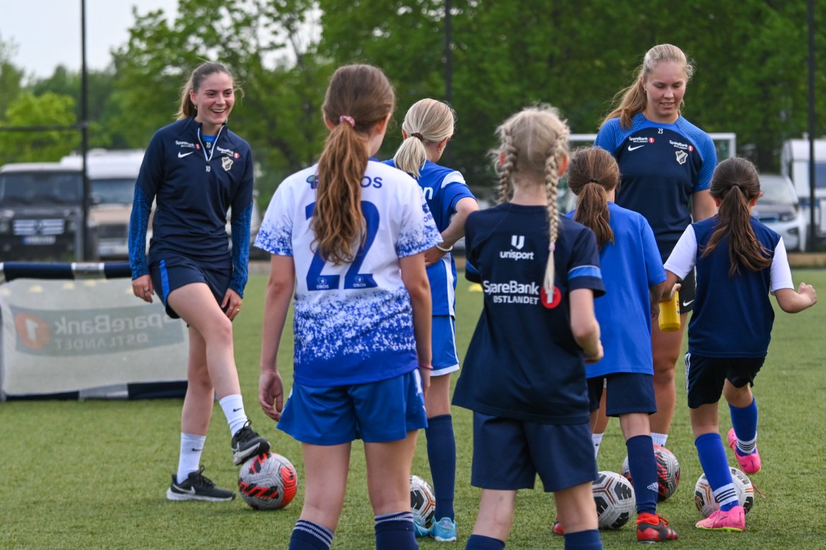 Vi fulgte to av våre på fadderbesøk; Martine Leonards og Smilla Vallotto som er faddere for årsklassene J2012/J2013. Jentene hadde trening på Nadderud kunstgress 2 mandag kveld og fadderne skrøt av innsatsen fra spillerne under økten! Se bilder nederst i saken.