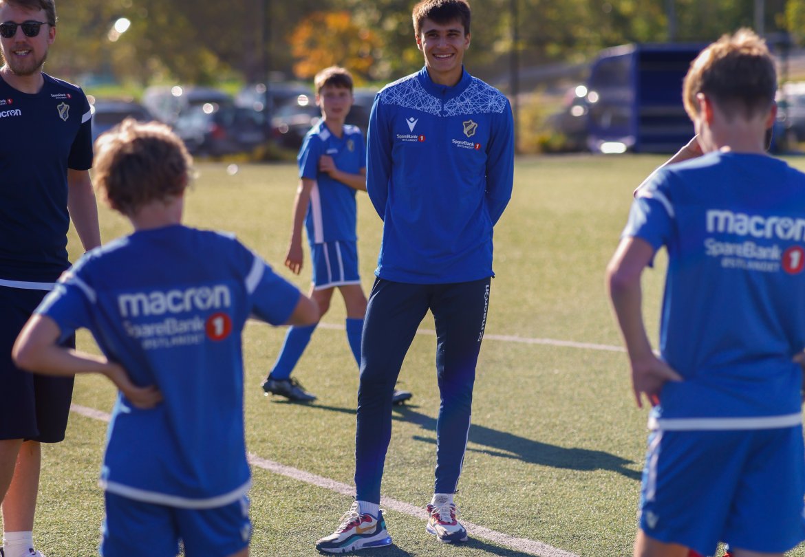 Fadderordningen - der A-lagsspillerne følger opp et yngre lag i klubben - er i full gang. På tirsdag var Oliver Edvardsen og Kay Kostadinov med på treninga til G2009, til stor glede for barna. Bildegalleri