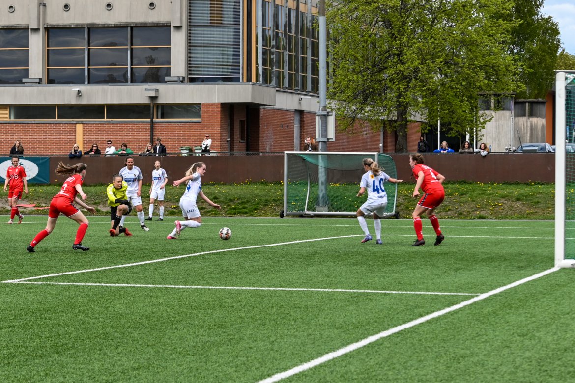 Det tok bare ett minutt og 20 sekunder før den første ballen lå i nettet bak Eiks keeper. Målscorer: Selma Elverum. Og Selma hadde litt av en ettermiddag på Tobbebanen. Hele seks mål scoret hun. Hele 13 - 0 ble det til slutt, etter at vi ledet 6 - 0 til pause.