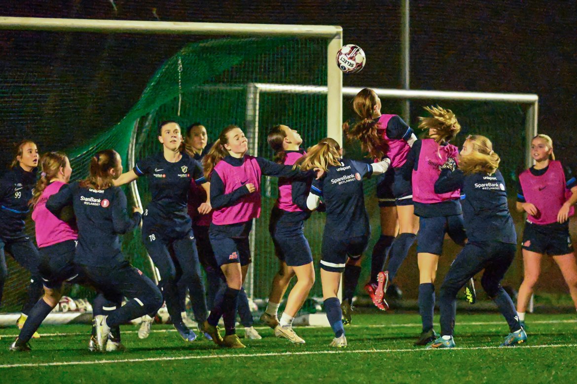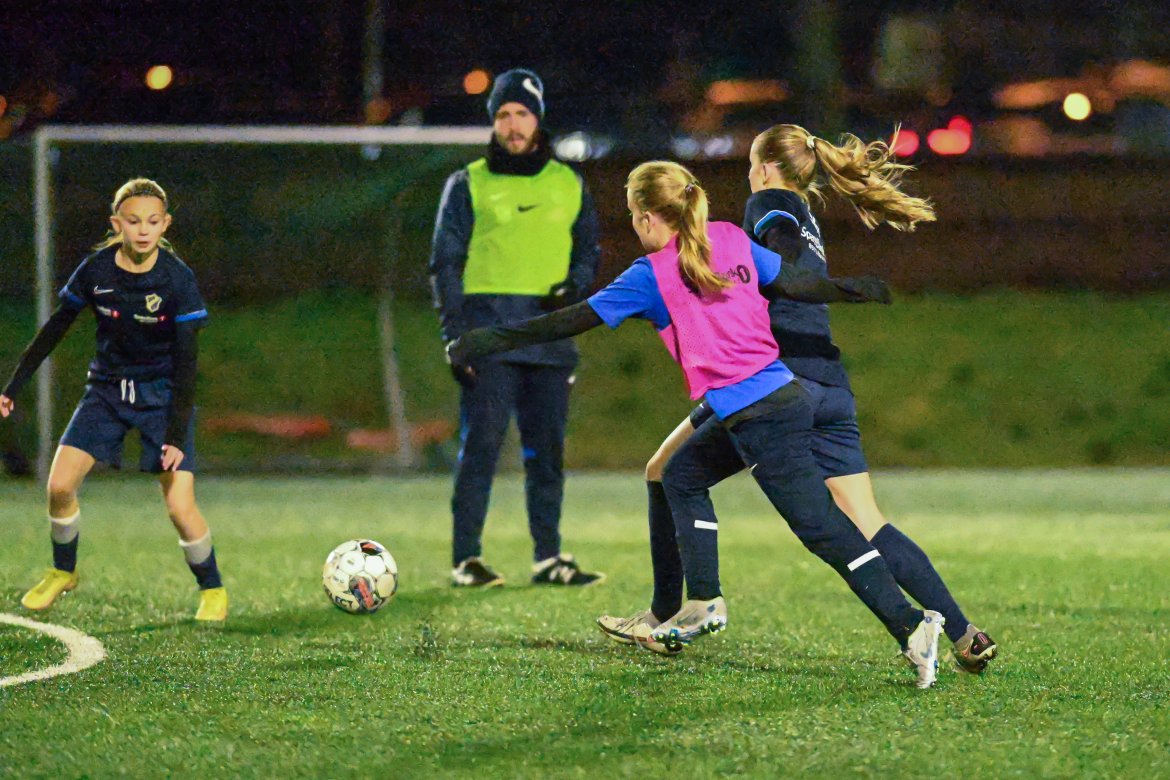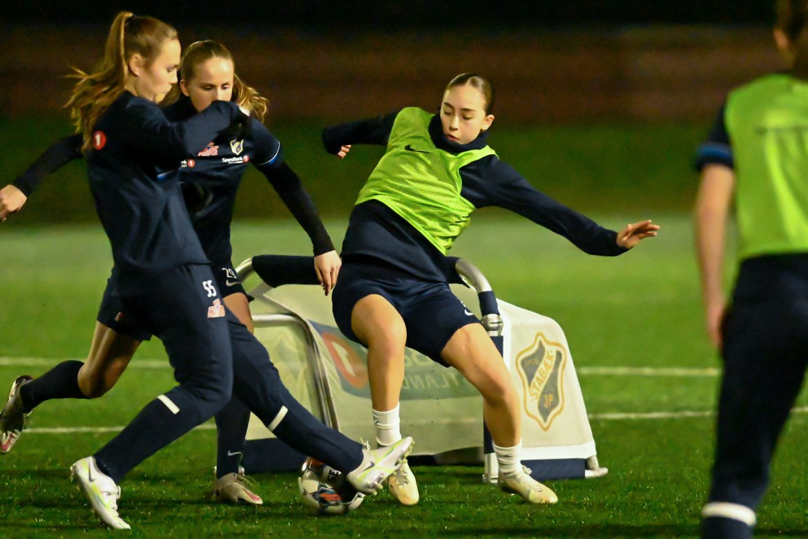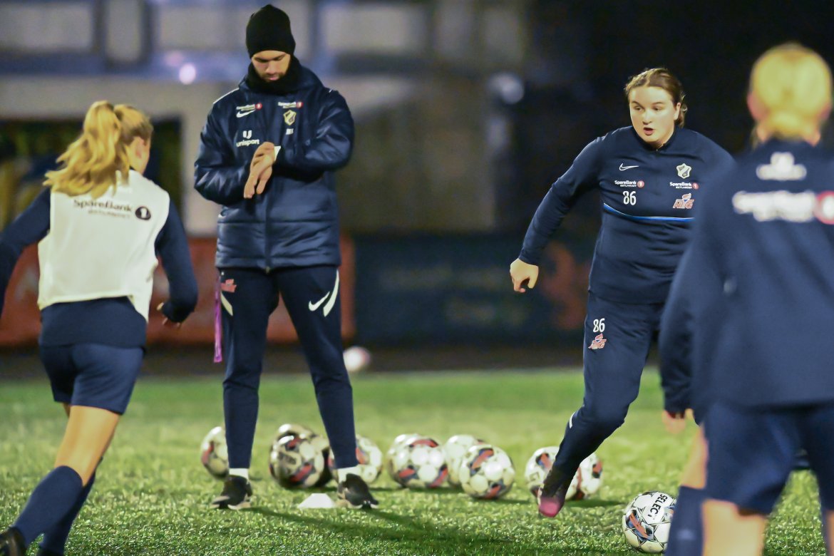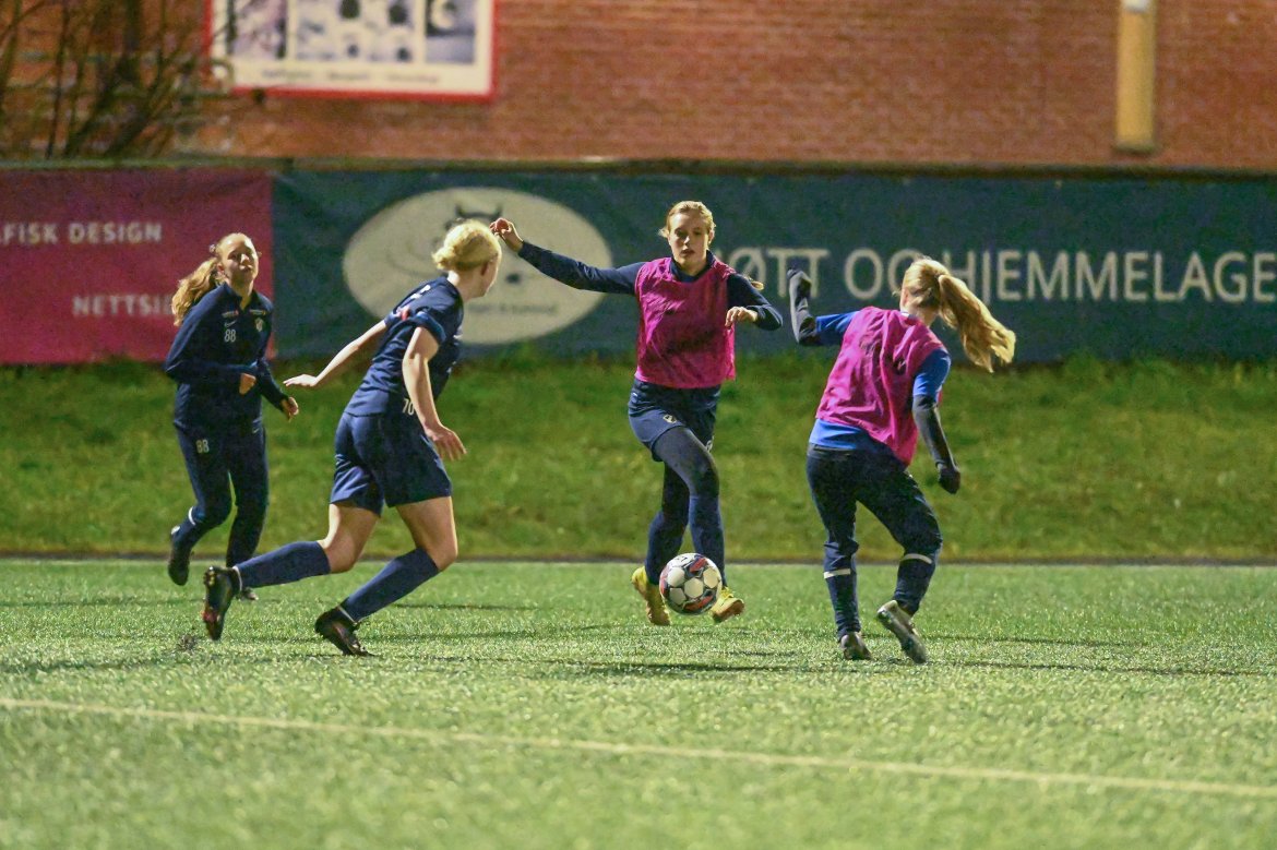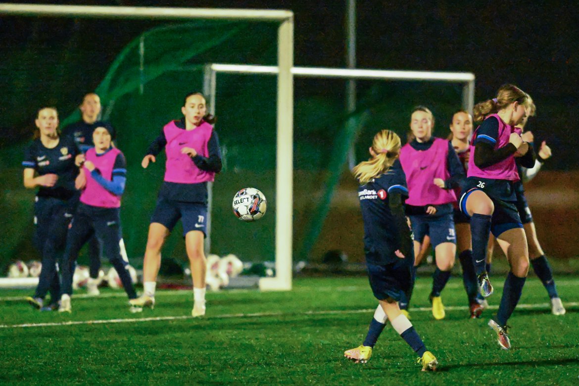 Når de fleste av oss velger soafen i en varm stue, trener våre jenter utrettelig frem til cupfinalen på lørdag mot Arna-Bjørnar. Torsdag var selvfølgelig ikke noe unntak, og her har du øyeblikk fra en litt smådårlig belyst bane (fra en fotografs ståsted):