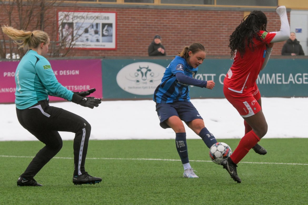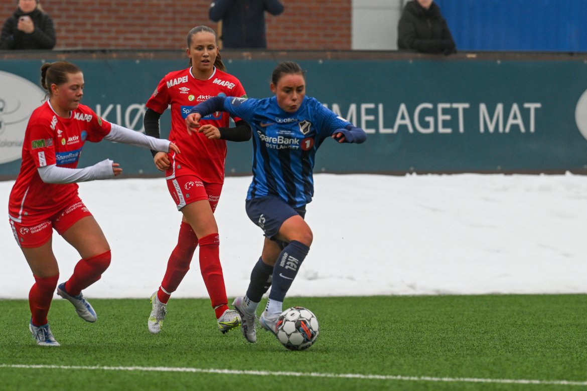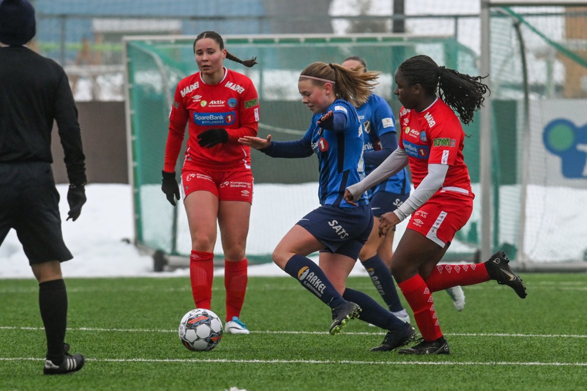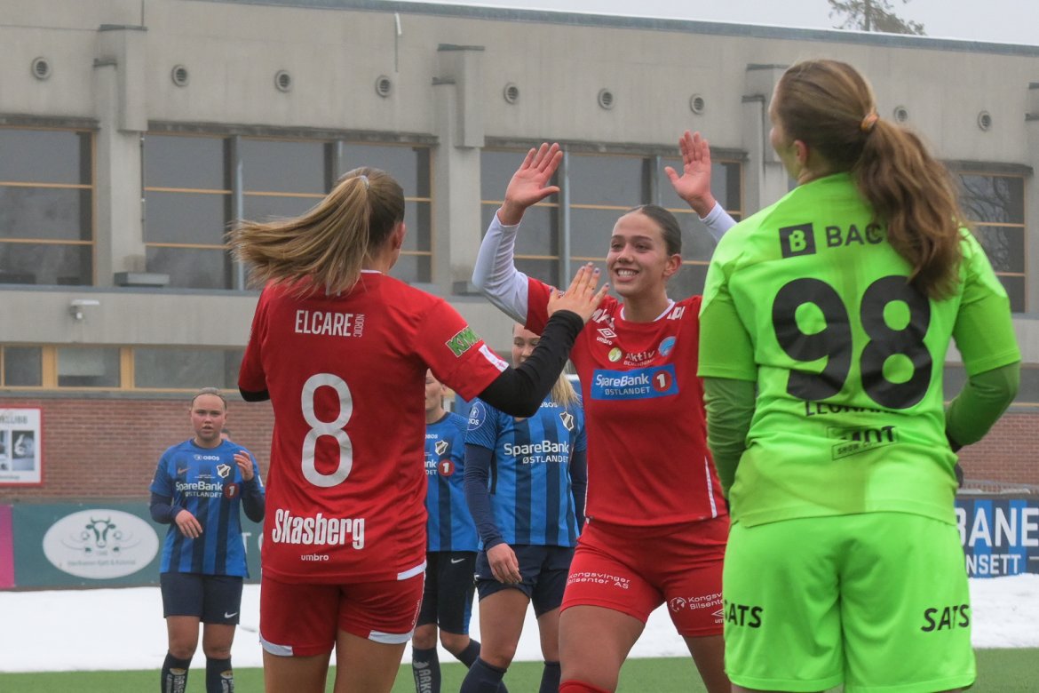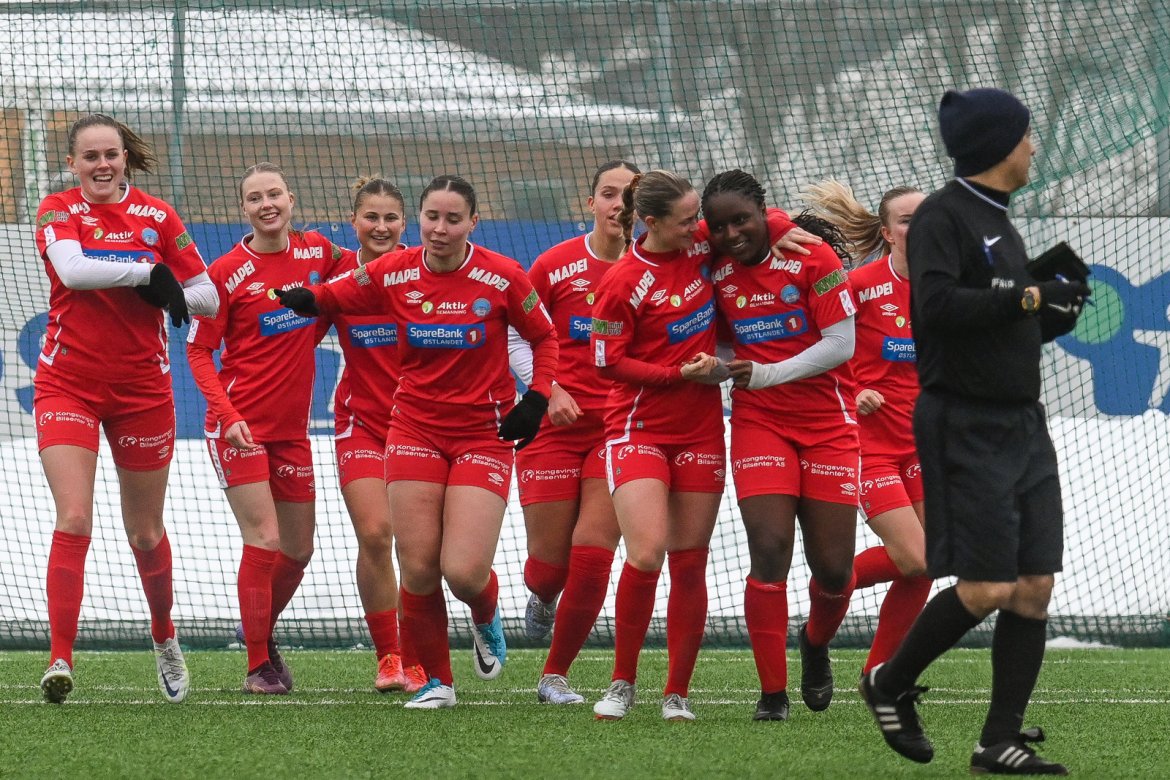 TØFT SKULLE DET BLI: Etter å score kampens første mål, fulgte Kongsvinger opp med hele fem mål i søndagens treningskamp. A-lag Kvinner Akademi jenter Video Bildegalleri