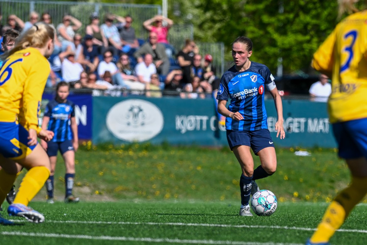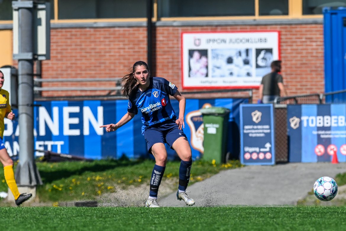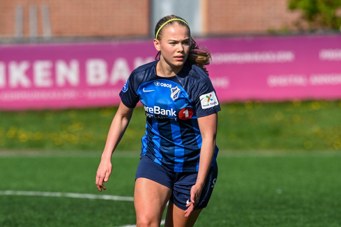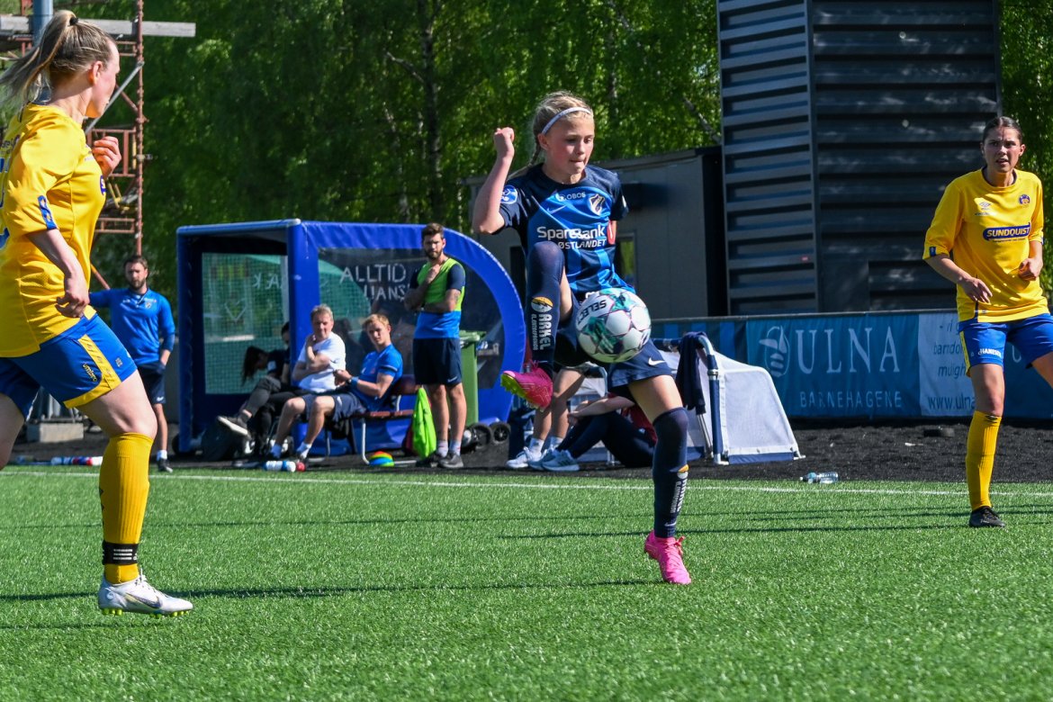 Den relativt ferske Stabæk-spilleren Kaja Winge Ånensen med #37 på ryggen, fikk i dag sin debut i 2. divisjon. Kaja kom til Stabæk fra klubben Jardar i mars 2023. Hun begynner på Stabæks samarbeidspartner NTG Bærum til høsten.