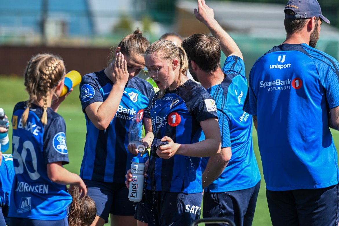 Mange varme øyeblikk på Nadderud, med knallvær og hardt kjempende spillere på banen: