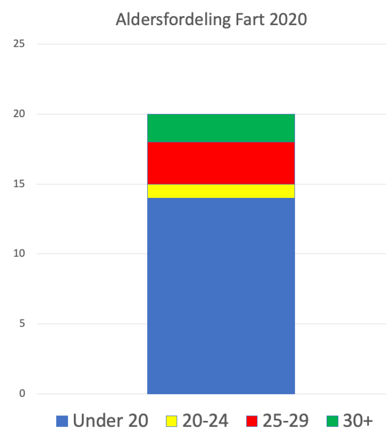 Fart har en ung stall, preget av lokale helter. 14 av 20 spillere holder junioralder. Keeper Lena Lauve er nesten dobbelt så gammel som de syv yngste i stallen. Snittalderen er 20,6 år. I fjor var den 22,7 år. Det er en betydelig foryngelse på ett år. Samtidig har Fart over flere år vist at de er gode på spillerutvikling og å få frem nye talenter. Vi blir derfor ikke overrasket om noen av Farts mange 17-åringer blir å finne på aldersbestemte landslag fremover.