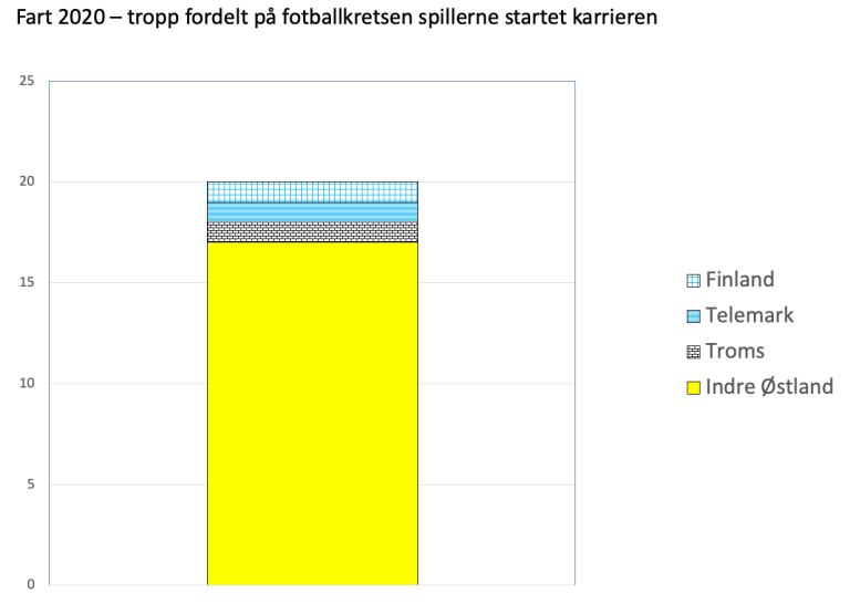 Ser vi på hvor spillerne kommer fra, trenger en ikke se veldig langt fra Fart-banen. Hele 17 spillere er lokale – i den grad enhver som startet å spille fotball i Indre Østland Krets ser på Hamar som sitt nærområde. I tillegg har de en finne og et par innflyttere. De utgjør sammen med Mina Kjørum og klubblegenden Maren Kristine Andersen, rutinen i stallen.