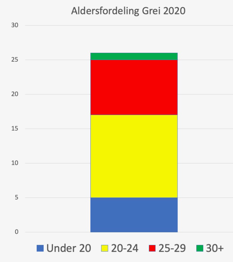 De har 26 spillere i A-stallen og disse holder en snittalder på 23,3 år. Det er mye til å være 1. divisjon. Rutine har de også på ledersiden. Jan Erling Nilsen holder i det meste både administrativt og i forhold til økonomi. Han har gjort en formidabel innsats i Grei i årevis. Jan Axel Odden Opsahl er hovedtrener. Han har solid trenererfaring og har blant annet trent Fløya, Stabæk og Asker til medaljer i Toppserien.