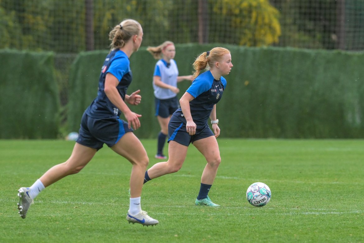 I påvente av ettermiddagens kamp mot LSK Kvinner, byr vi på noen bilder fra treningsfeltet i går (mandag). Stemningen var god og fokuset var høyt: