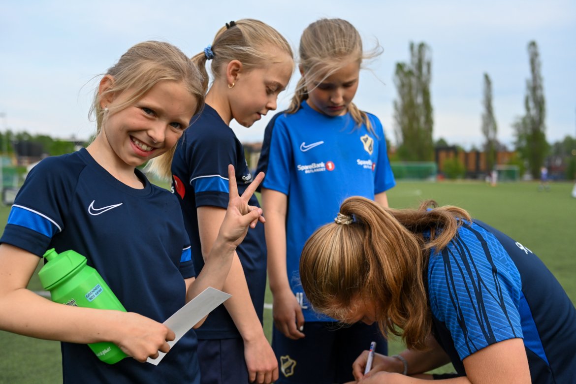 Vi fulgte to av våre på fadderbesøk; Martine Leonards og Smilla Vallotto som er faddere for årsklassene J2012/J2013. Jentene hadde trening på Nadderud kunstgress 2 mandag kveld og fadderne skrøt av innsatsen fra spillerne under økten! Se bilder nederst i saken.