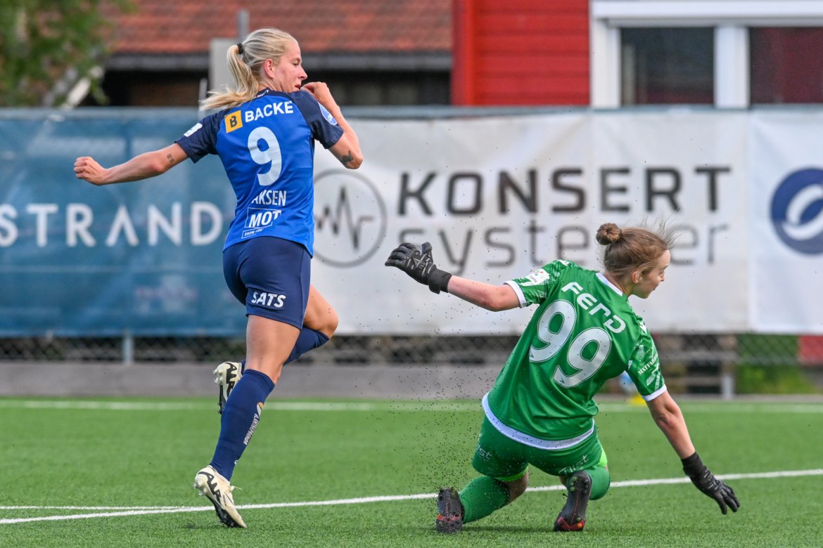 Varmende sol fra nesten skyfri himmel satte rammen på Hoslebanen tirsdag etterdag og tidlig kveld. Det skulle ta tolv minutter før Meryll Abrahamsen scoret bortelagets første mål for kvelden.