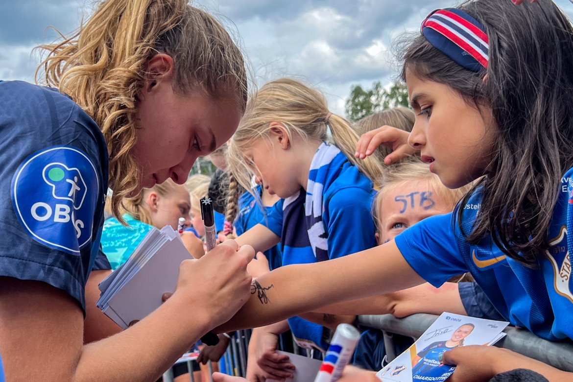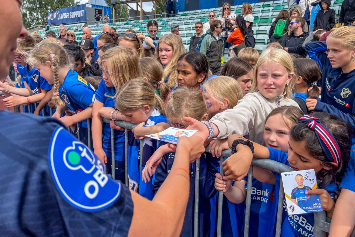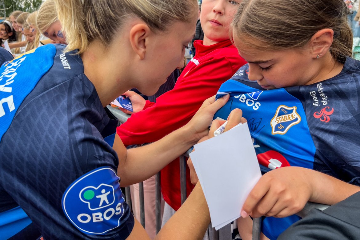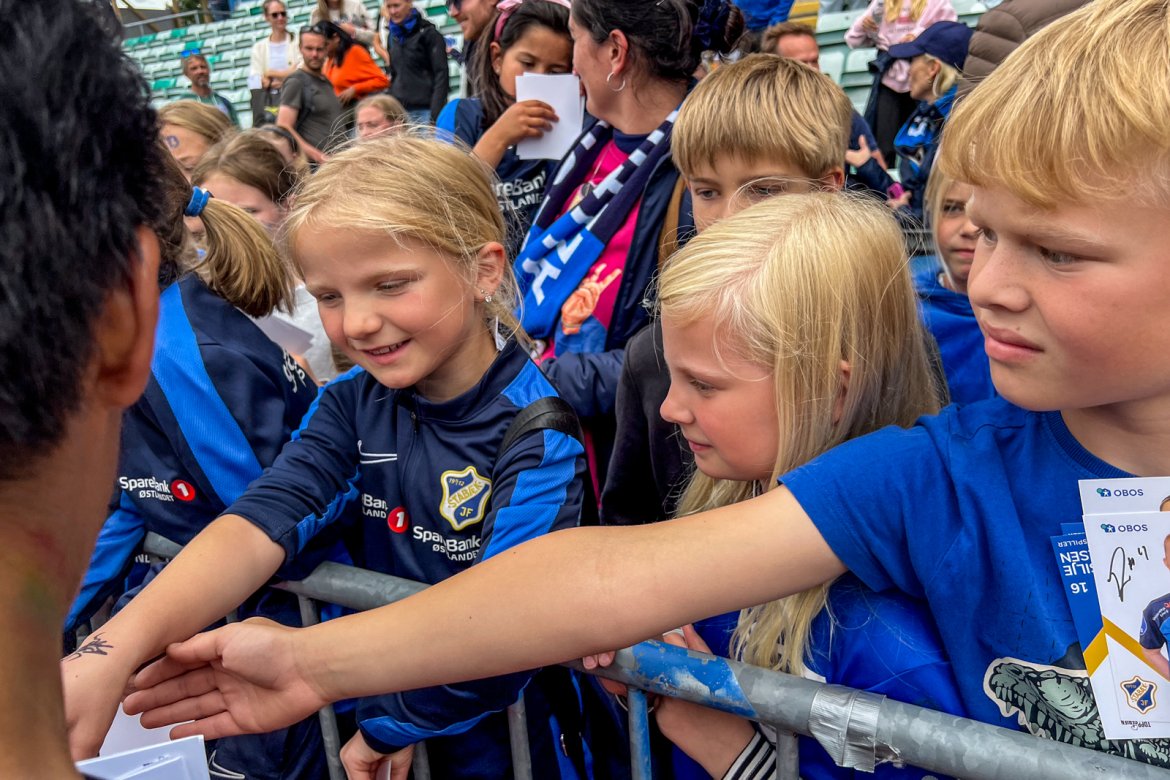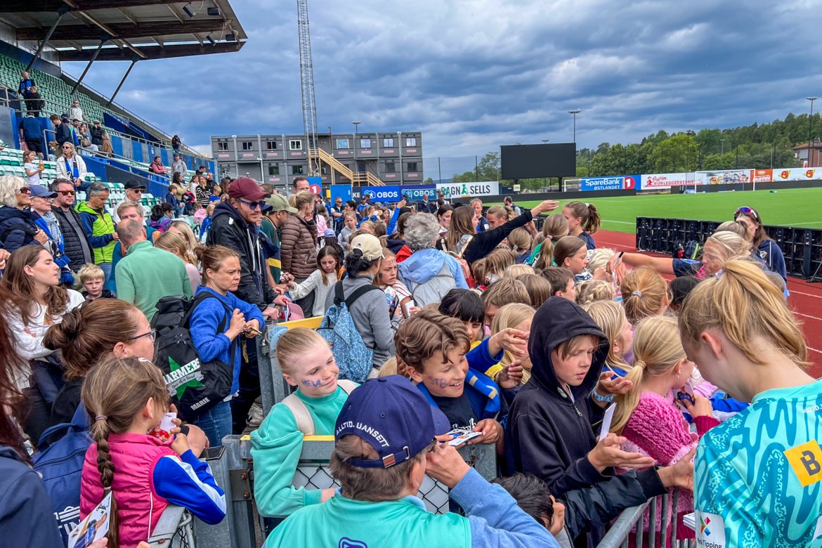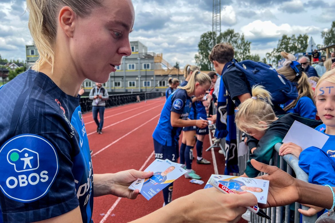 Et herlig kaos etter kampen til stor glede for publikum og ikke minst spillerne selv; det var tid for OBOS fotballkort, autografskriving og selfies: