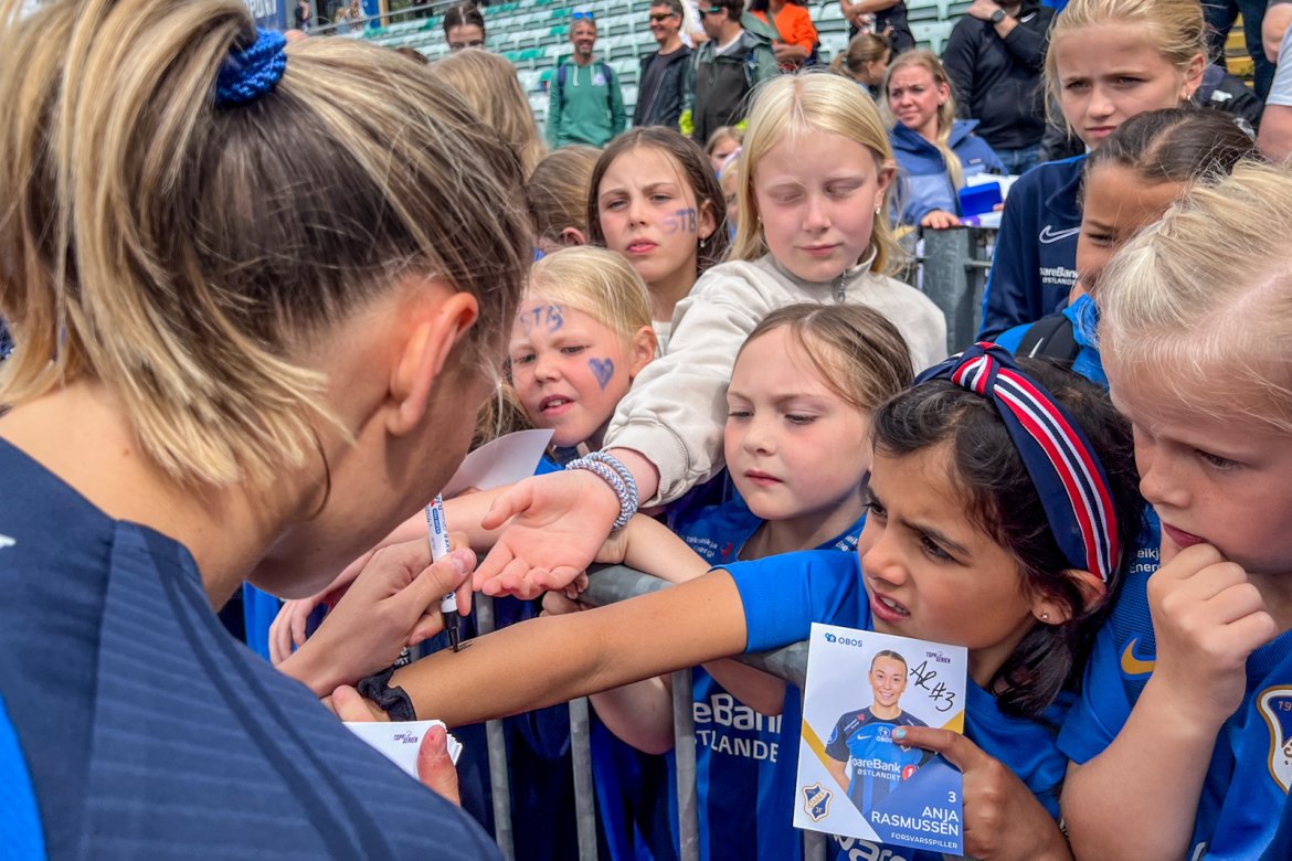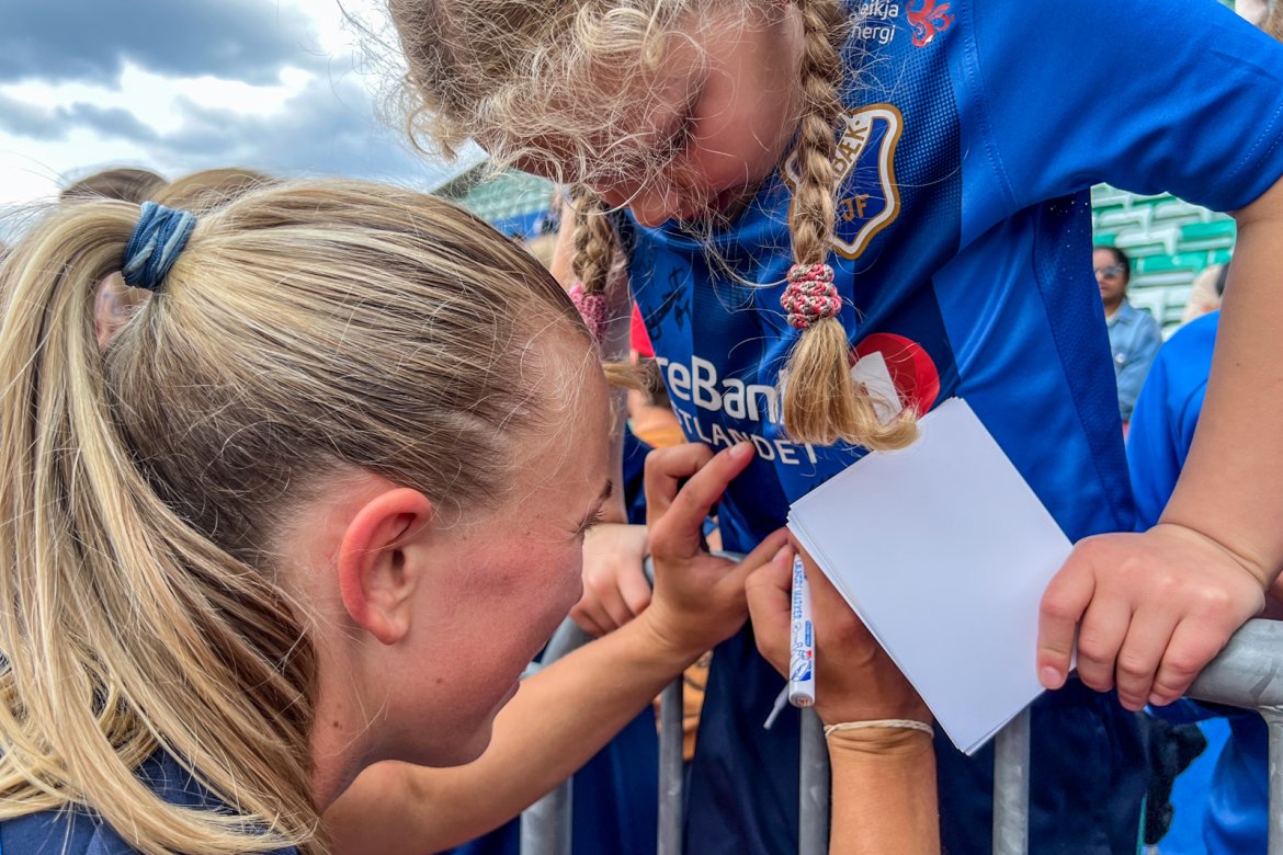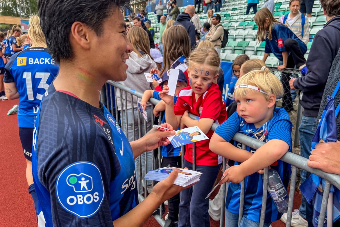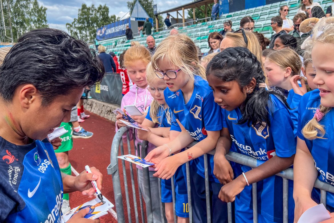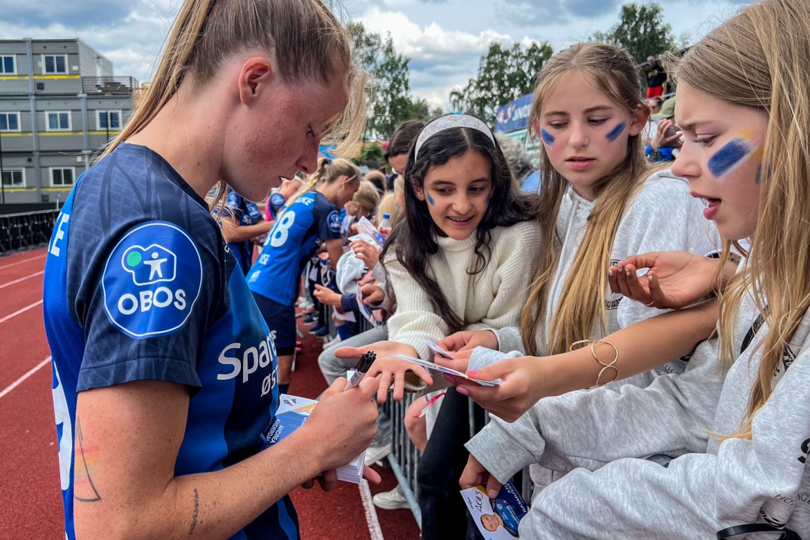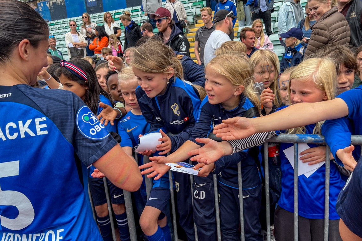 Et herlig kaos etter kampen til stor glede for publikum og ikke minst spillerne selv; det var tid for OBOS fotballkort, autografskriving og selfies: