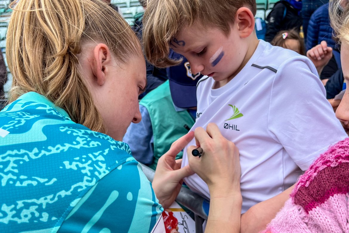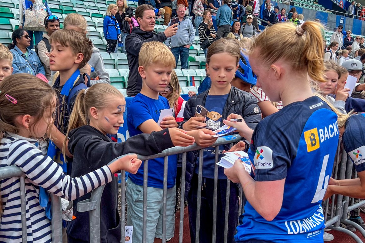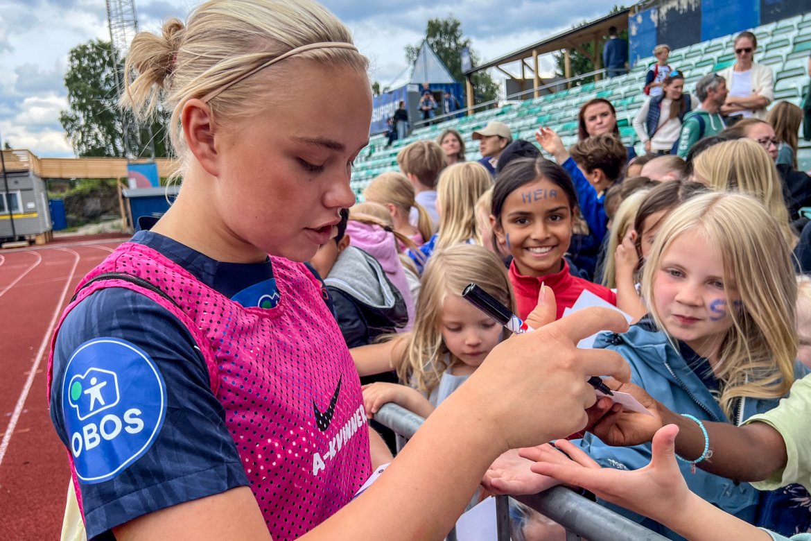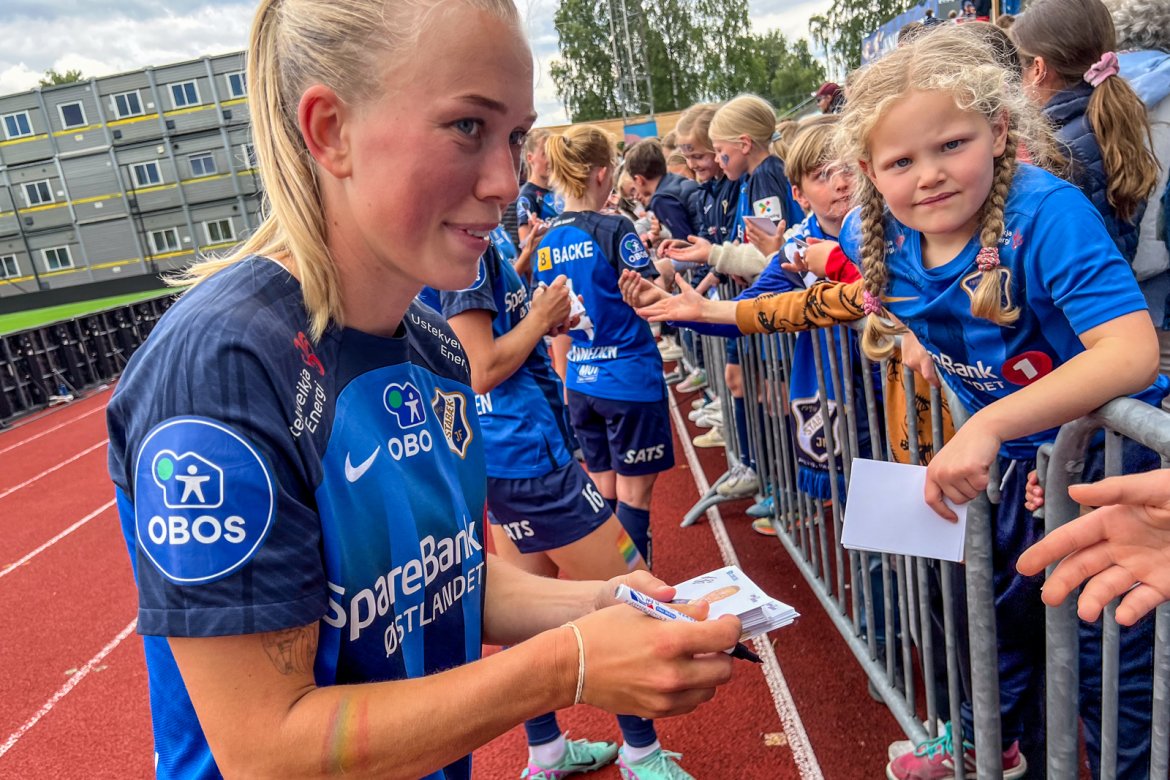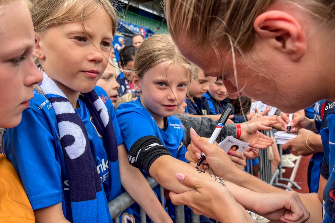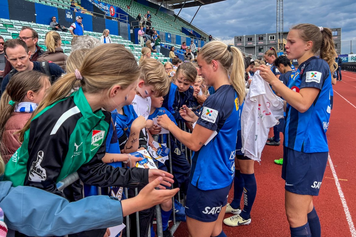 Et herlig kaos etter kampen til stor glede for publikum og ikke minst spillerne selv; det var tid for OBOS fotballkort, autografskriving og selfies: