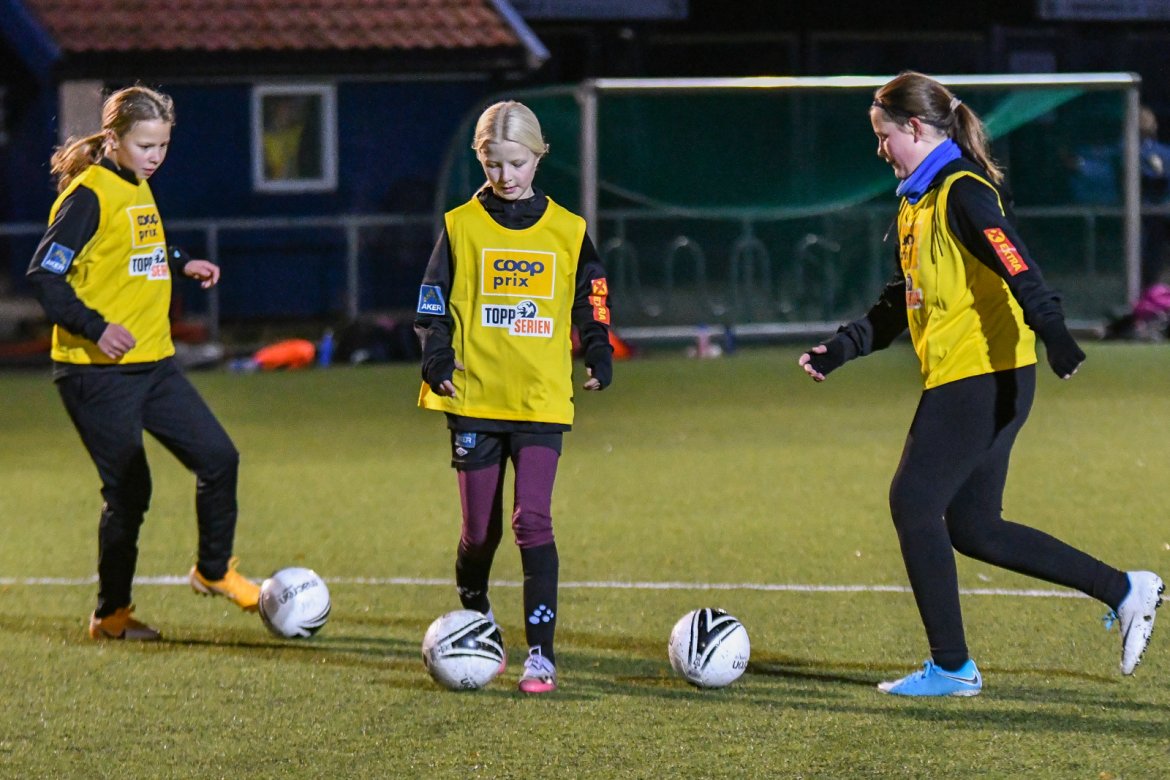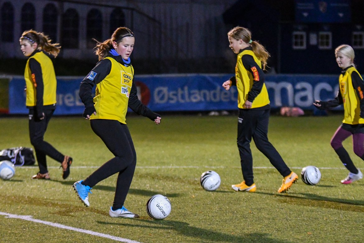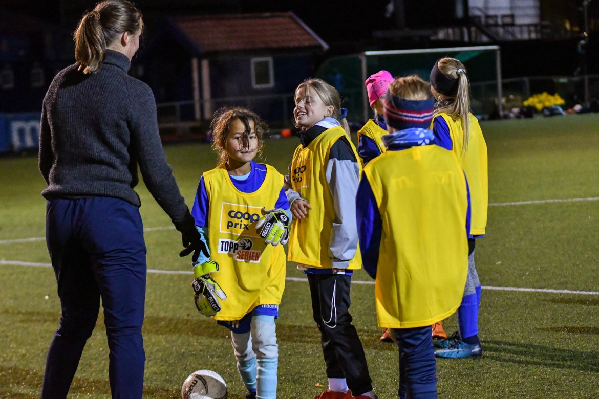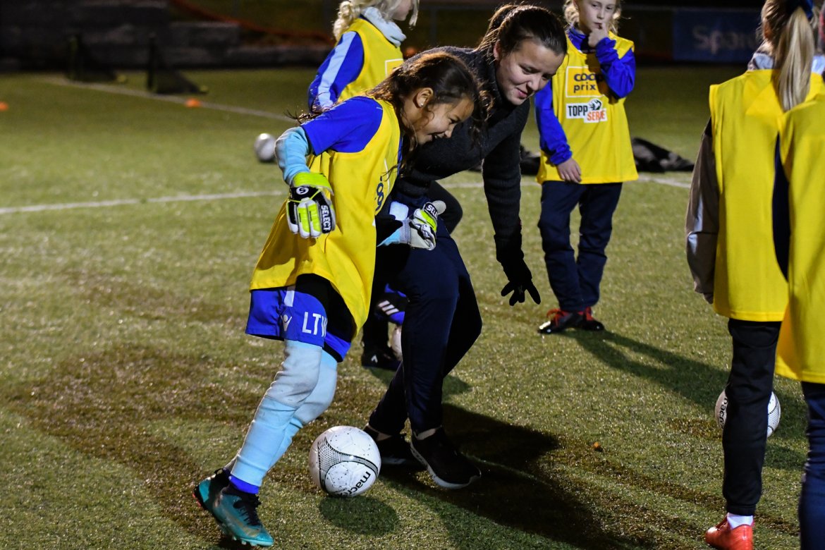 Nærmere bestemt Nadderud kunstgress og bestod av hele 92 ivrige fotballjenter og 20 A-lagsspillere på onsdag. Her er noen av mange fine øyeblikk: