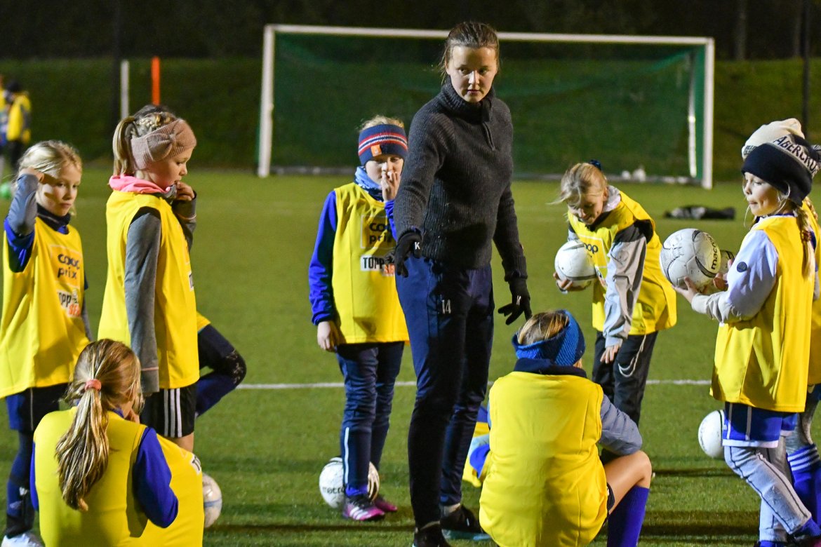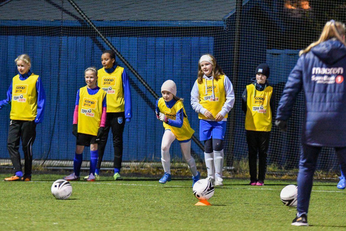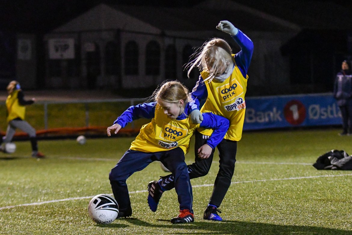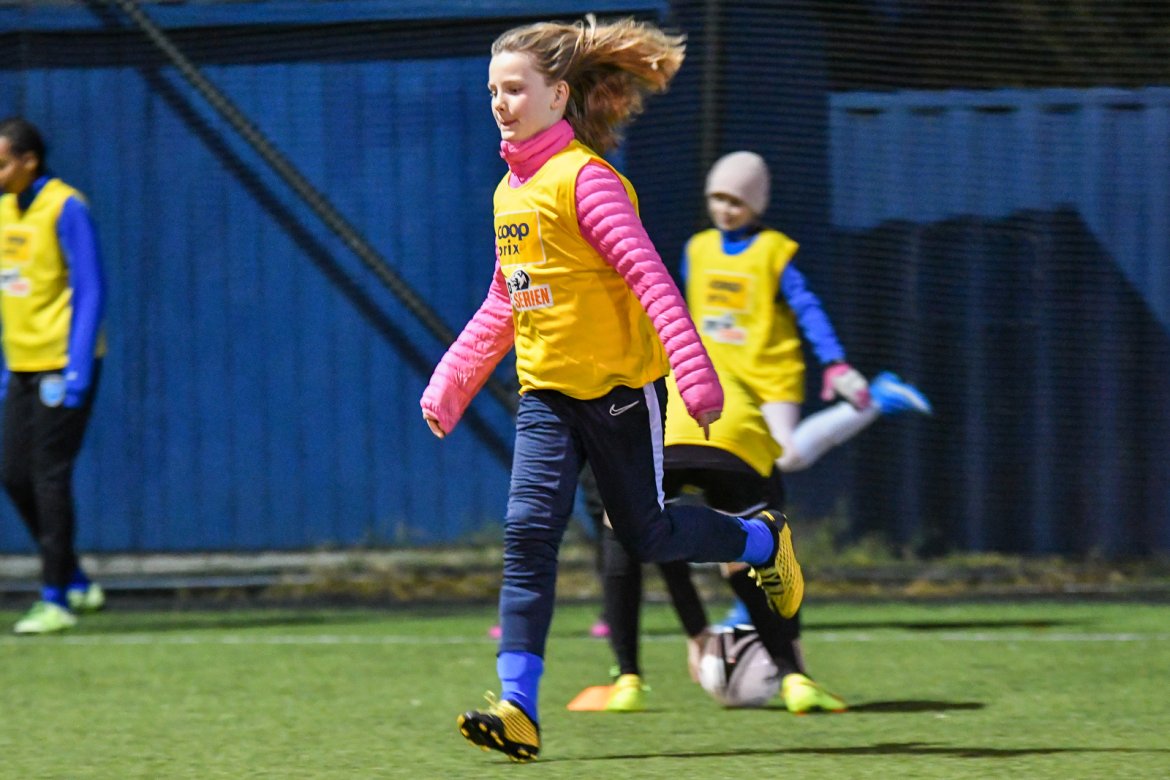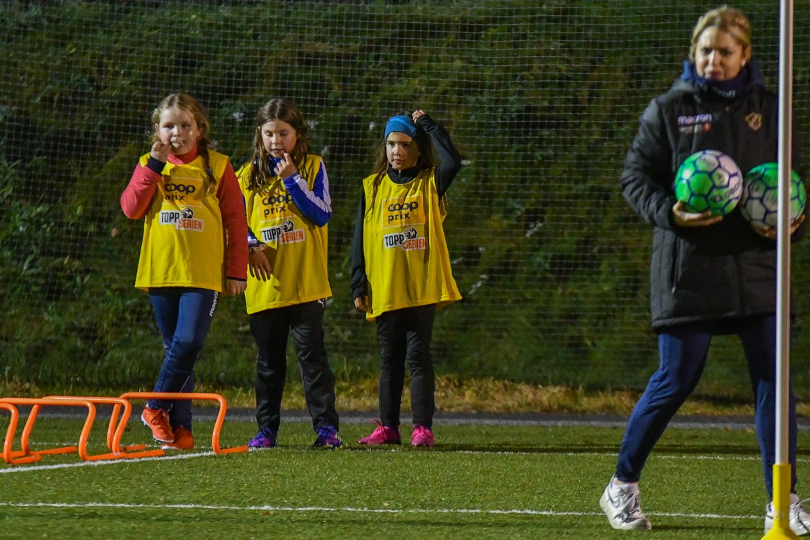Nærmere bestemt Nadderud kunstgress og bestod av hele 92 ivrige fotballjenter og 20 A-lagsspillere på onsdag. Her er noen av mange fine øyeblikk: