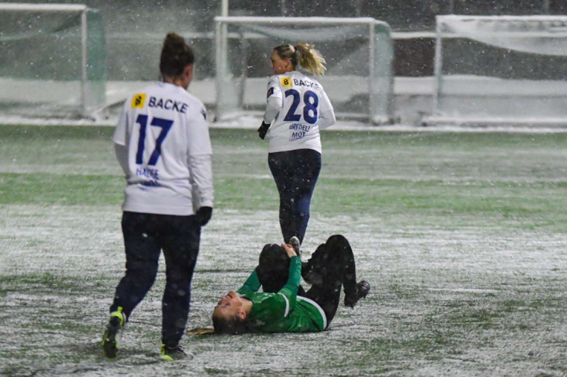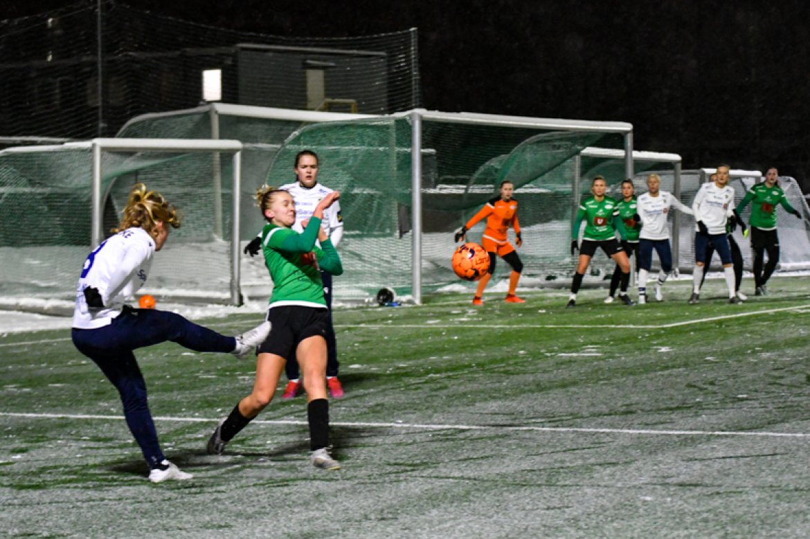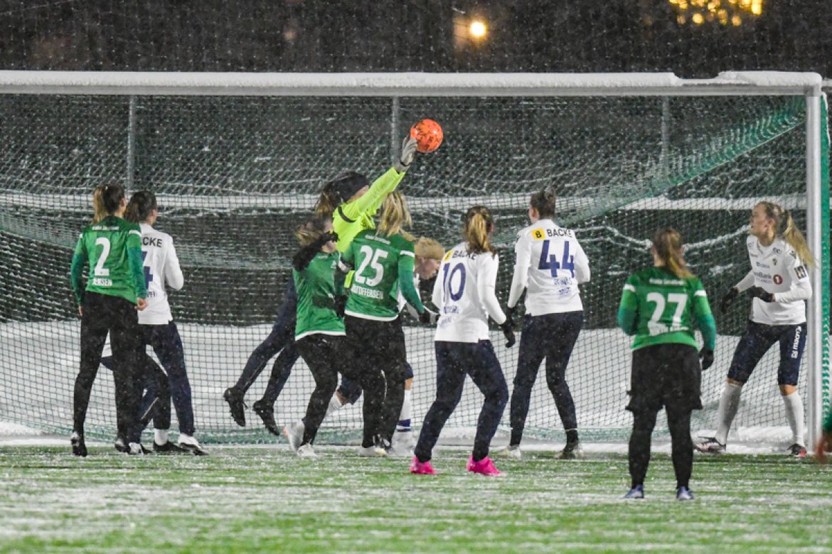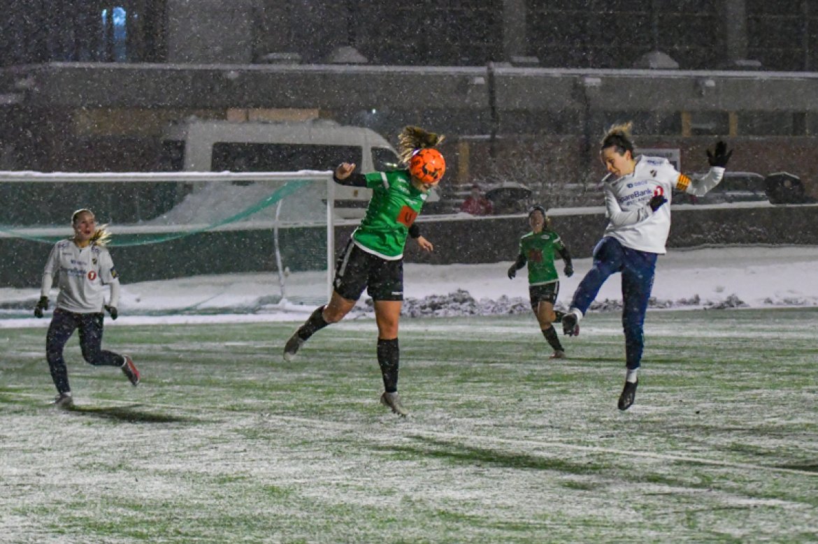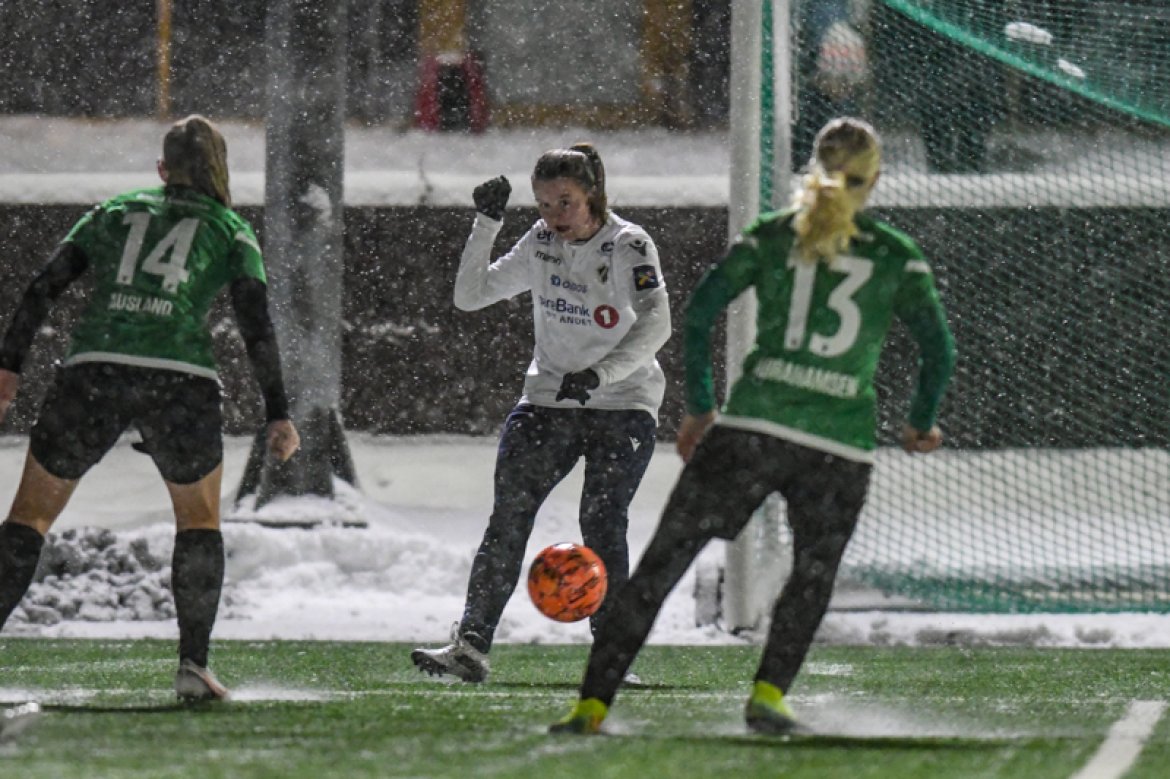 Med 16 seire og én uavgjort på de 17 kampene vi har spilt mot Amazon Grimstad, gikk jentene fokuserte på banen i møte med Sørlandets perle i et forrykende snøvær over Nadderud, torsdag kveld.