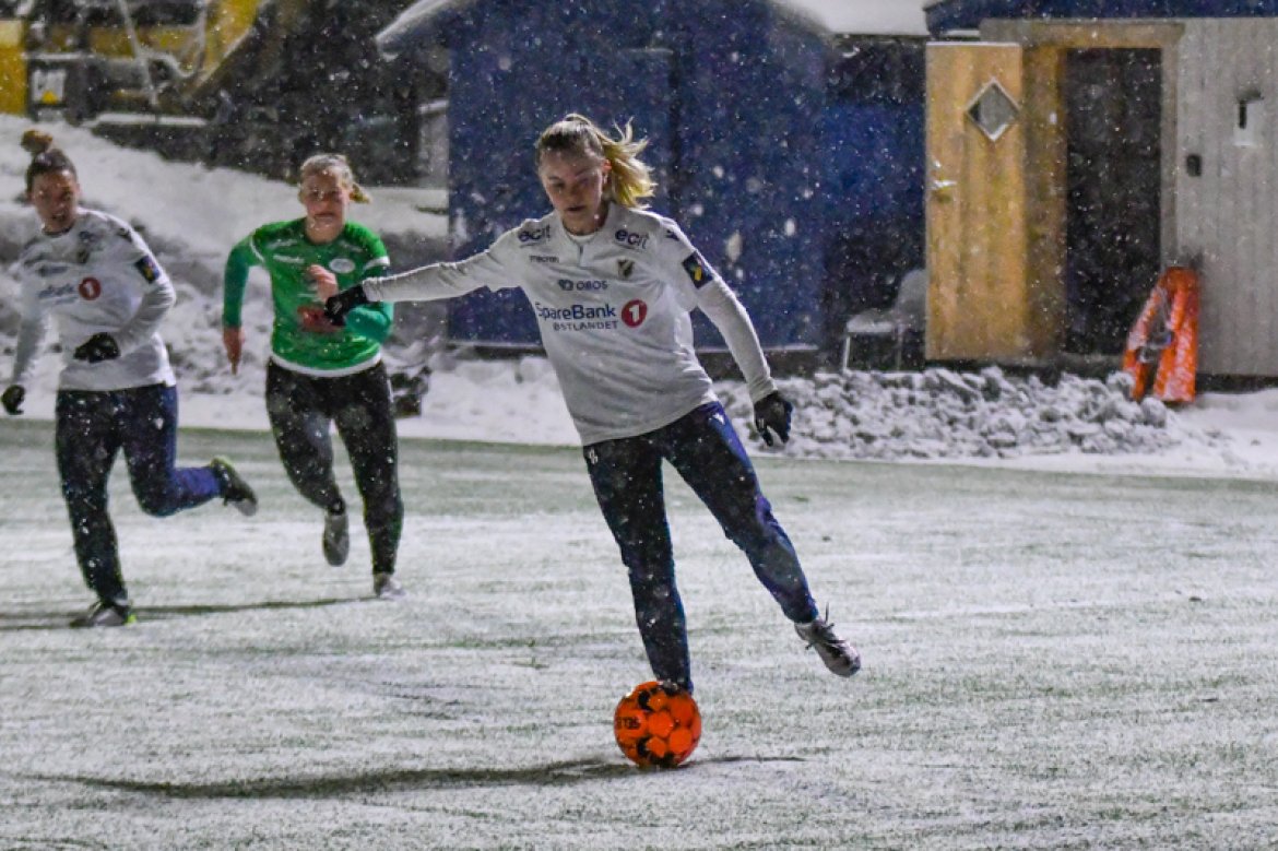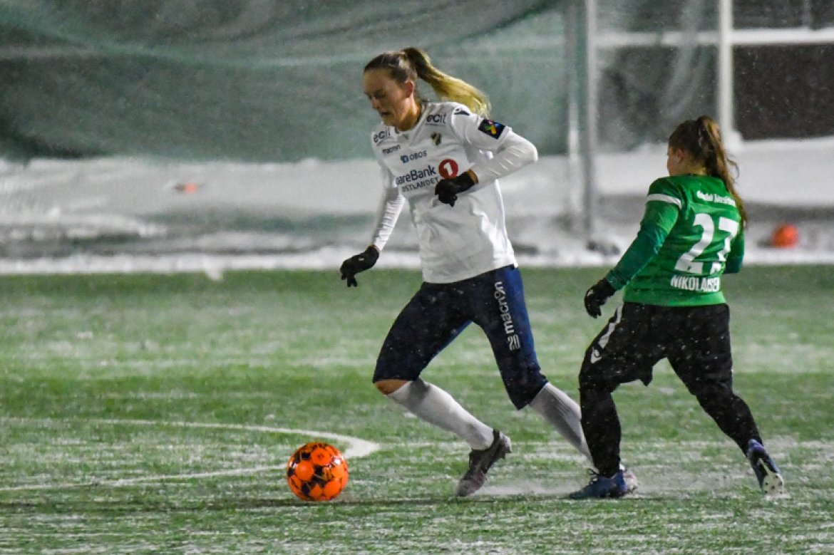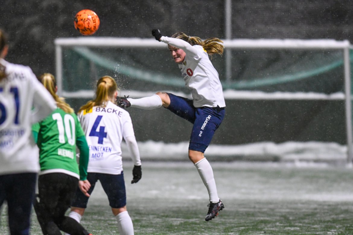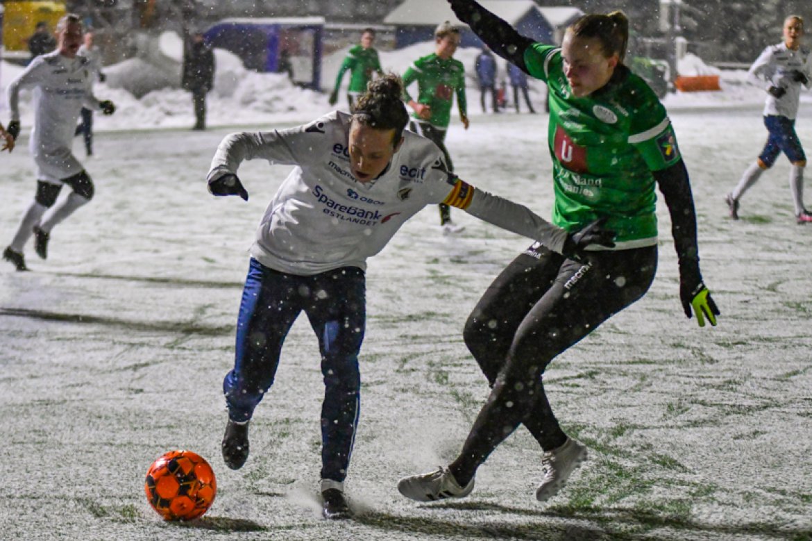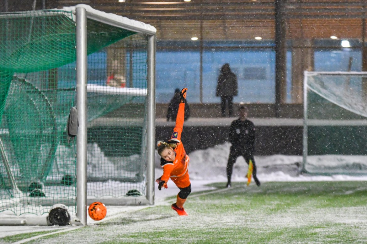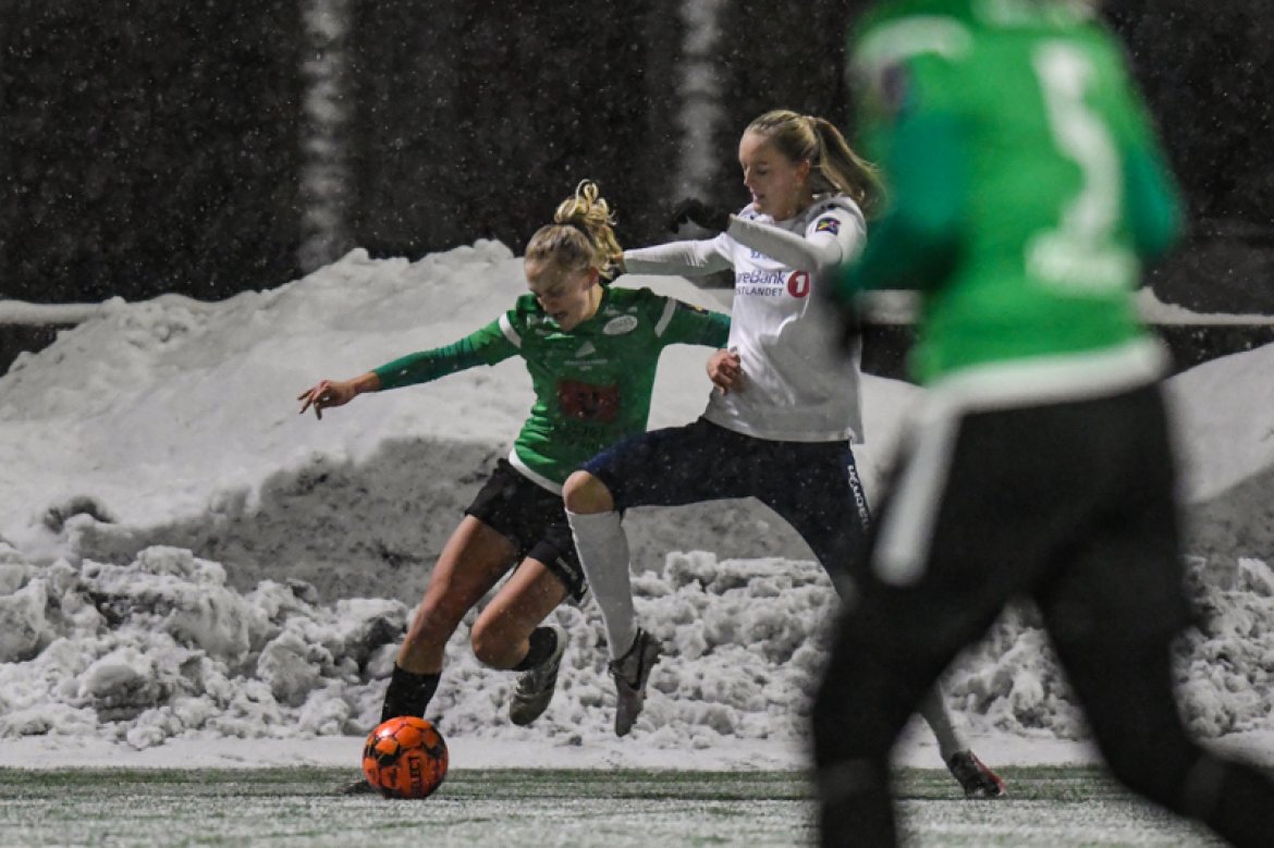 Med 16 seire og én uavgjort på de 17 kampene vi har spilt mot Amazon Grimstad, gikk jentene fokuserte på banen i møte med Sørlandets perle i et forrykende snøvær over Nadderud, torsdag kveld.