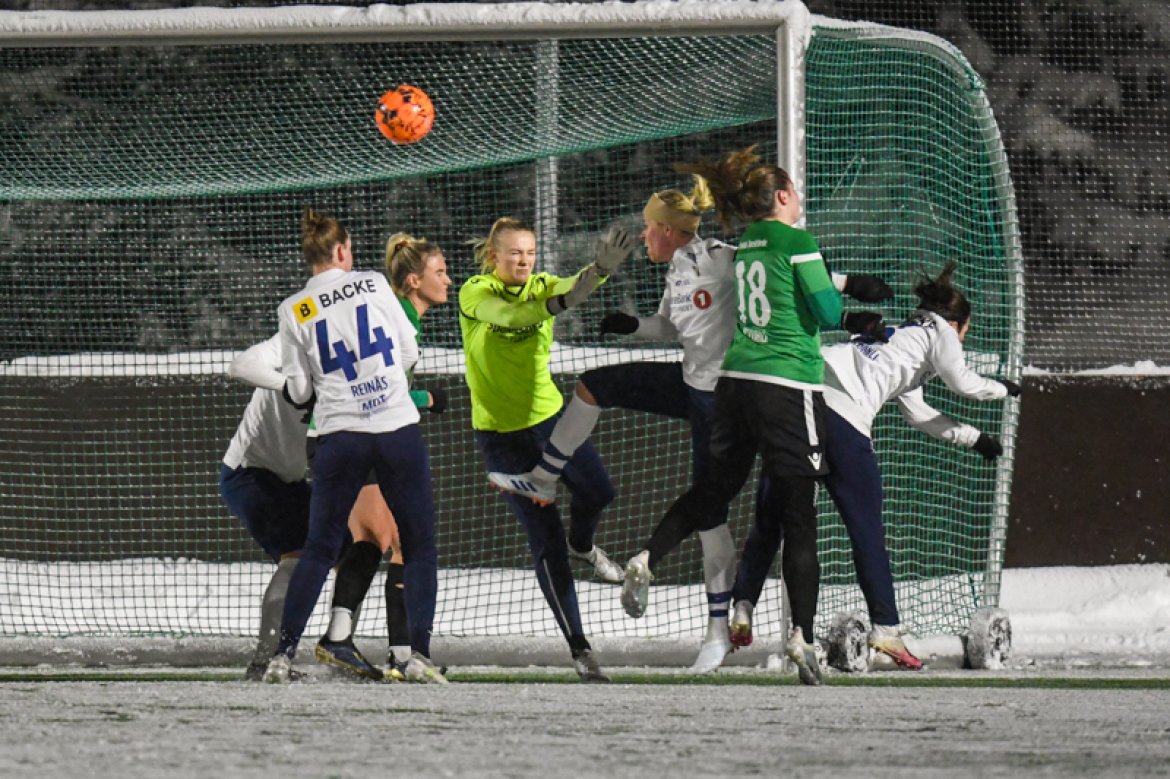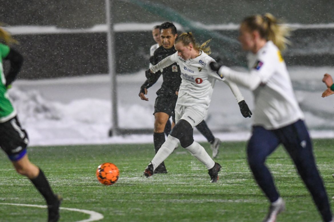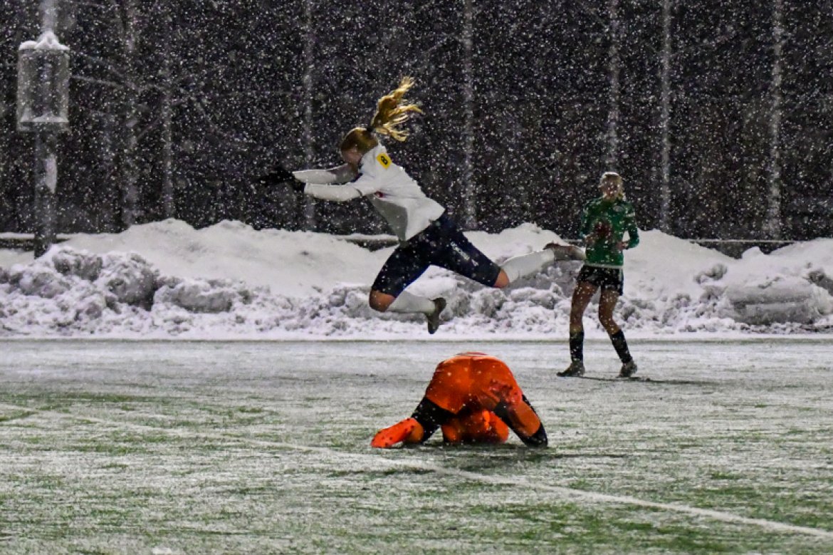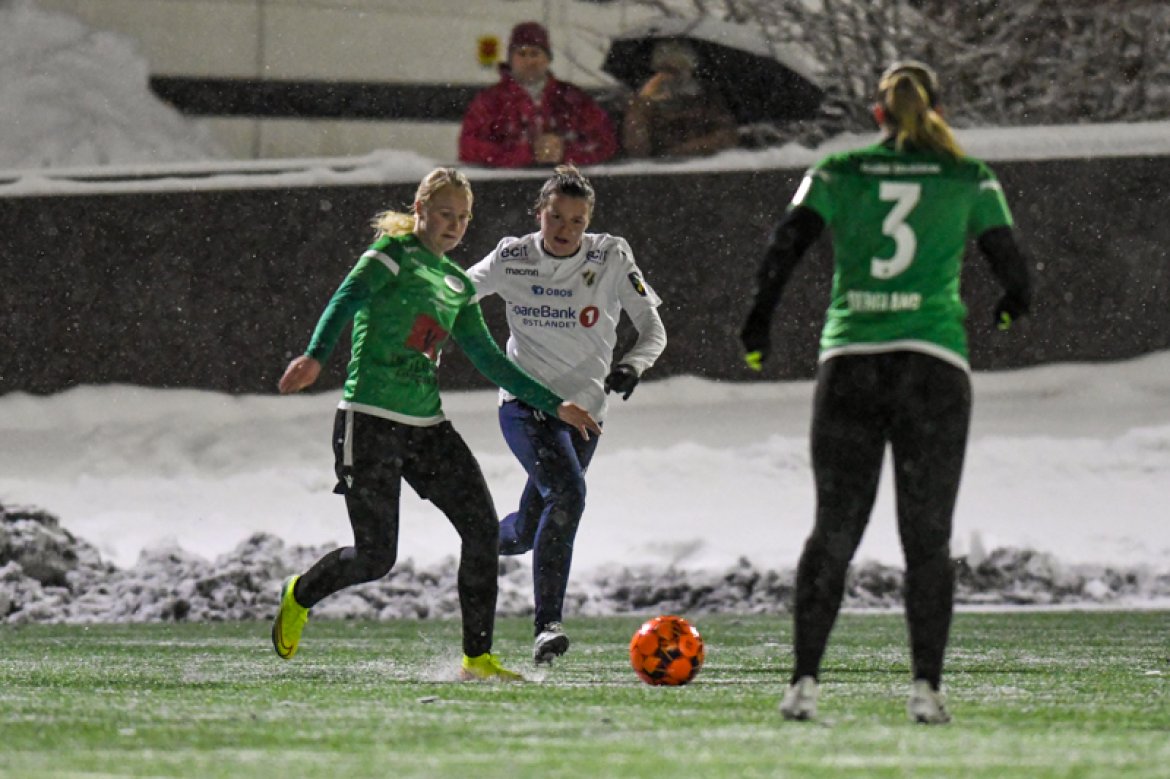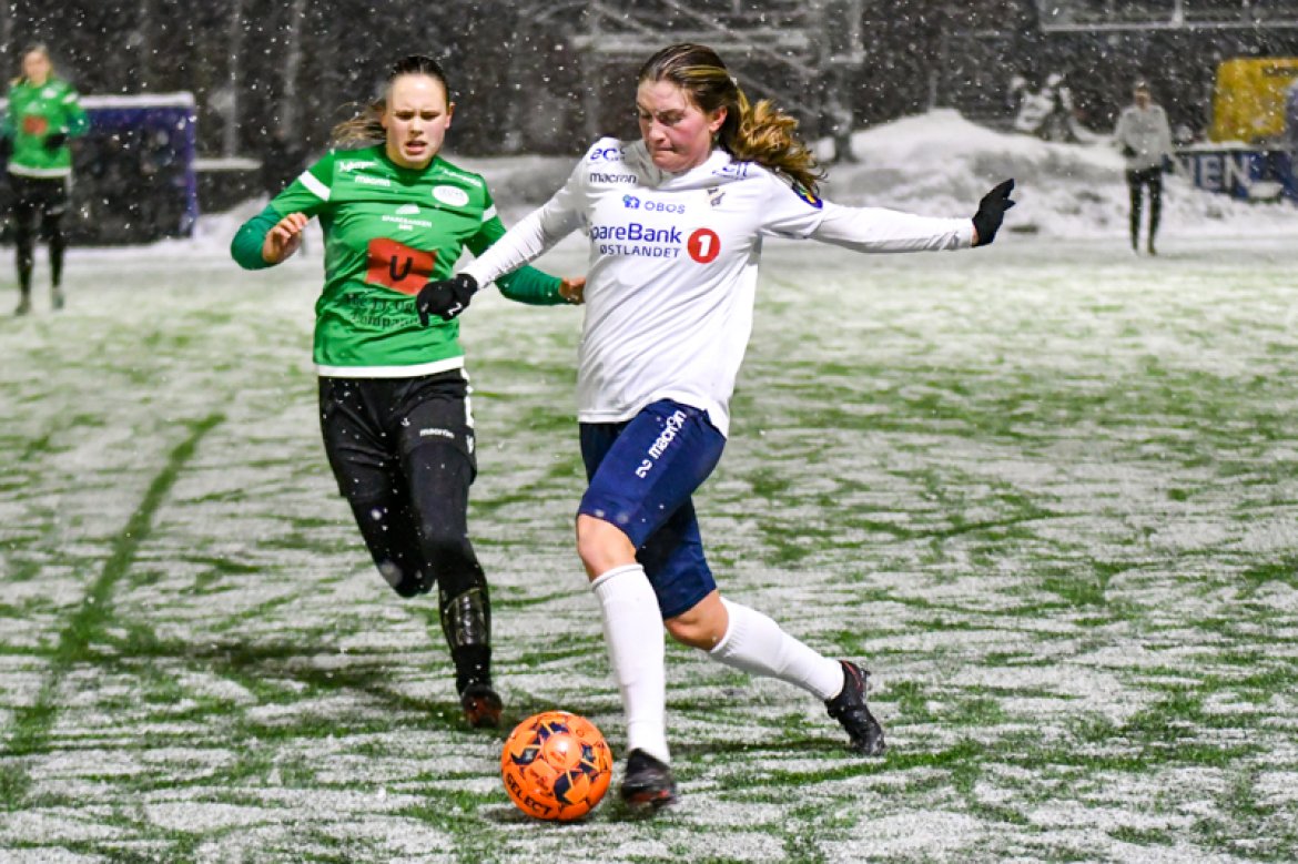 Med 16 seire og én uavgjort på de 17 kampene vi har spilt mot Amazon Grimstad, gikk jentene fokuserte på banen i møte med Sørlandets perle i et forrykende snøvær over Nadderud, torsdag kveld.