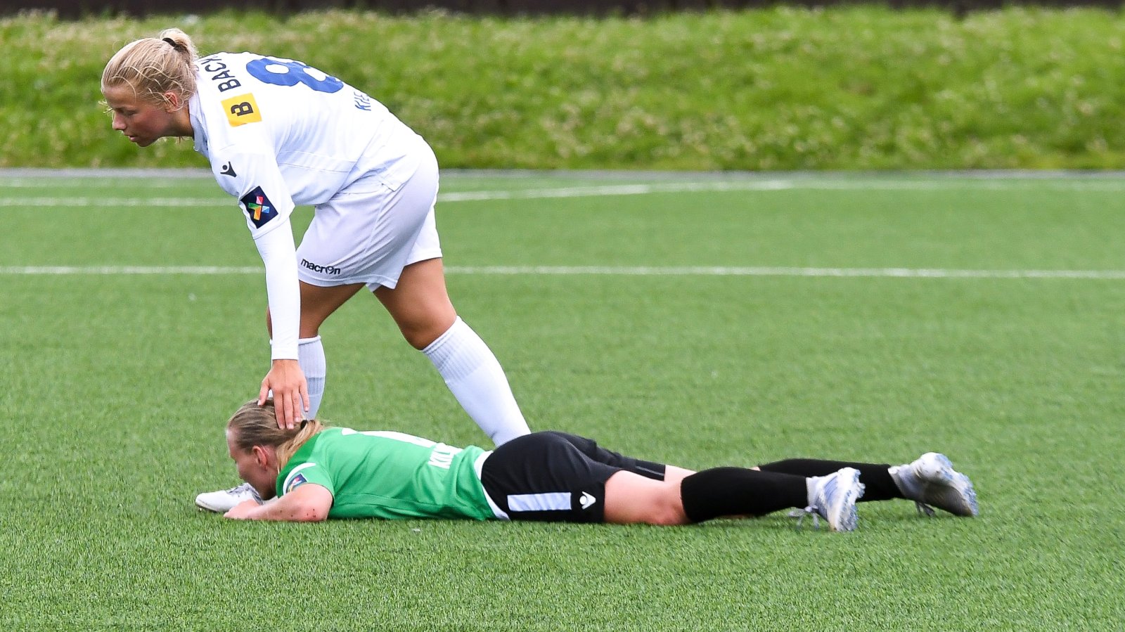 Vi stanget i 90 minutter i Grimstad, men så på overtid satt den endelig. Justine Kielland skrudde en corner rett i mål. Hun valgt et usedvanlig godt tidspunkt for å score sitt første mål for A-laget.