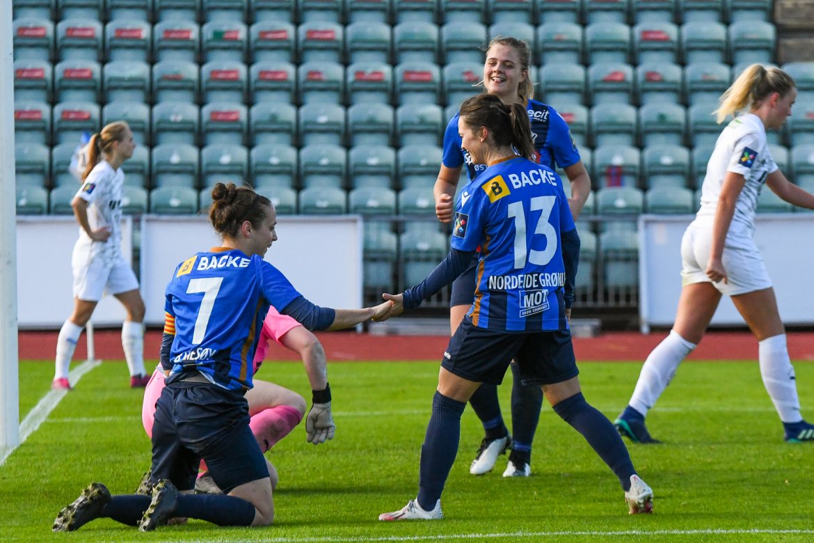Det ble mange mål forrige søndag, og mange gledesscener på Nadderud-gresset - i motsetning til Sunnivas iherdige forsøk på å vise grensen... Bildegalleri