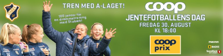 Alle som har meldt seg på er med på Coop Jentefotballens dag 2019 på fredag 30. august kl 18:00. Dere vil alle motta en e-post fra klubben med nærmere informasjon rundt dagen.
