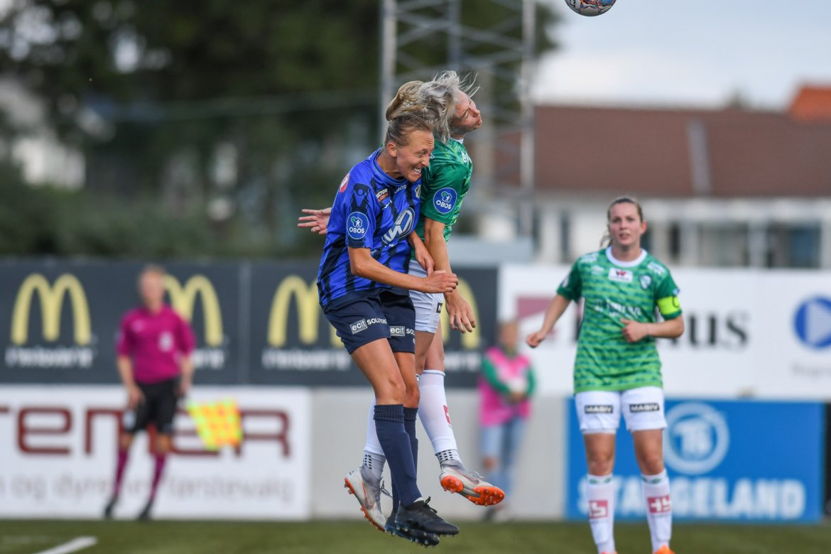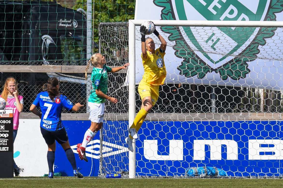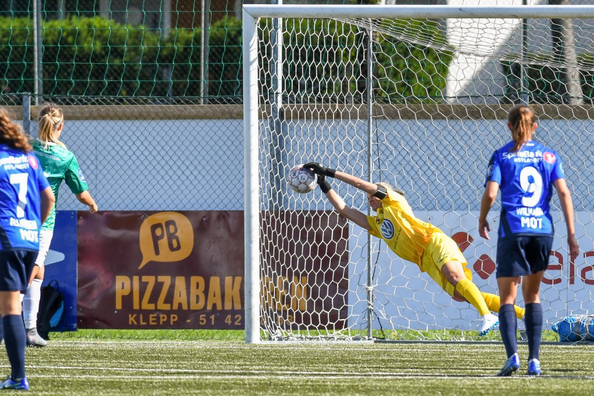 Her har du noen av øyeblikkene fra Rogaland, i gårsdagens kamp - bl.a med Ingrid Hjelmseth flotte redning av staffesparket satt av Klepps Kyrsti Yallop i det 82. minutt: