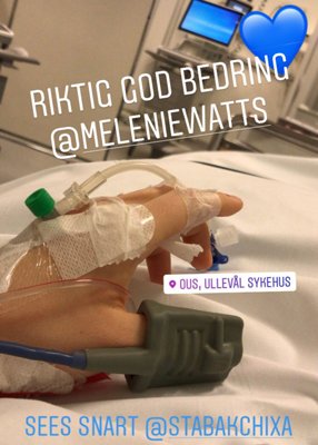Prognosene er gode, men hun er nok ikke tilbake før til sommeren. Alt før det er bonus. Melenie er ved godt mot og gleder seg til rehaben. Hun er uansett med videre. Mandag fikk vi en hilsen fra Ullevål sykehus, og pasienten selv.