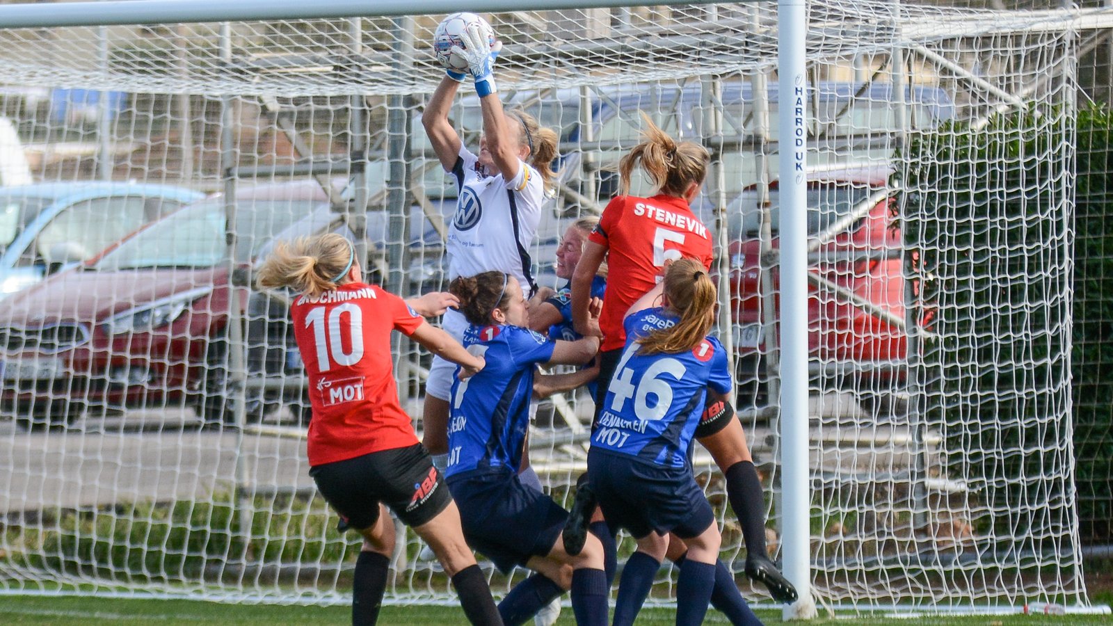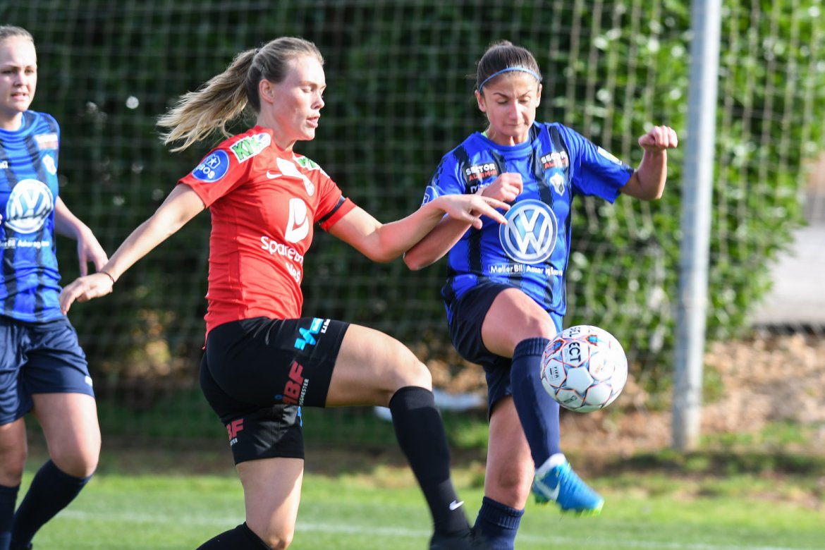 Melissa Bjånesøy og Heidi Ellingsen oppsummerer kampen sammen med trener Vanja Stefanovic: