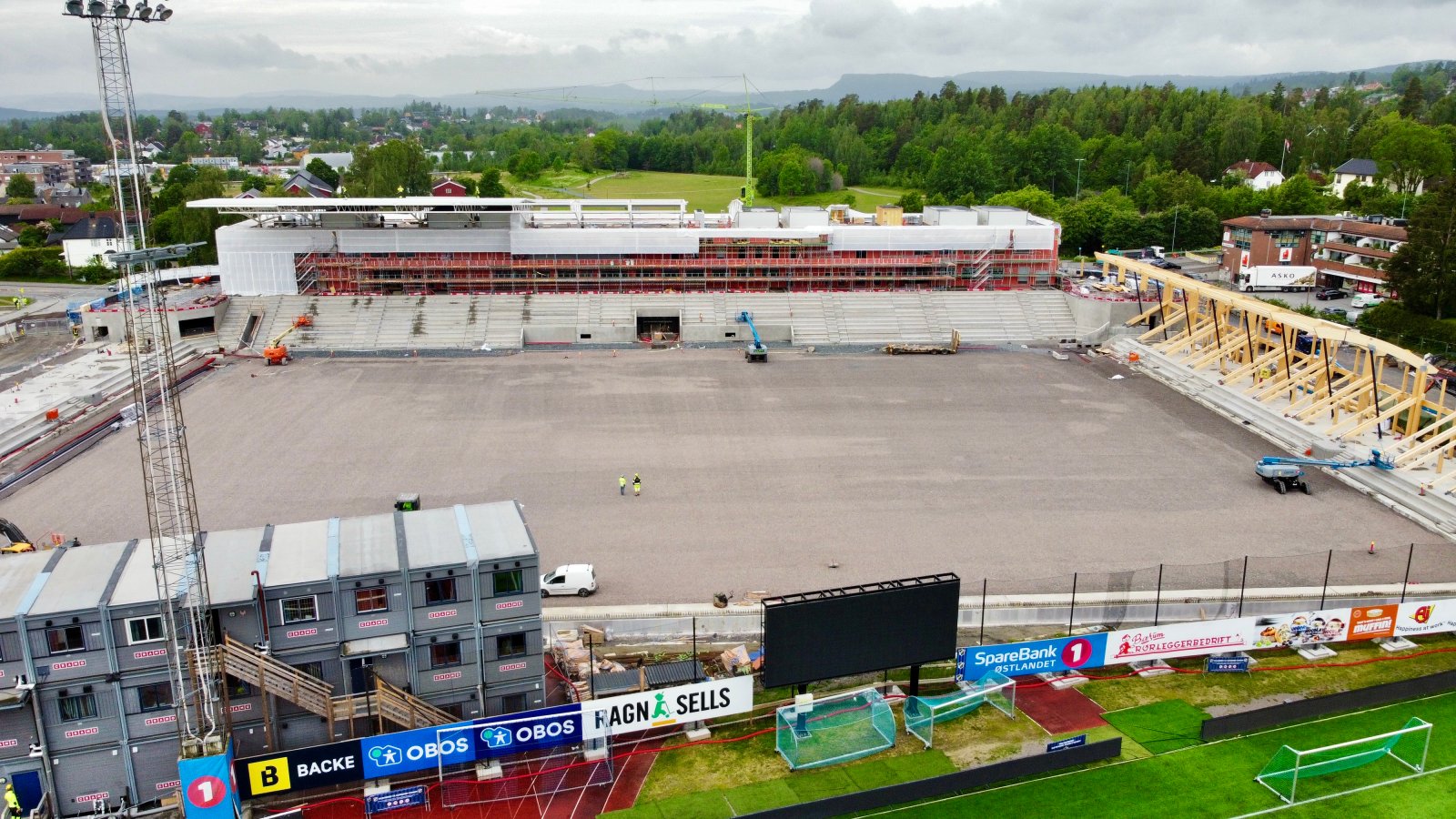 Her kan du følge utviklingen av Nye Nadderud Idrettspark. Nye Nadderud Idrettspark
