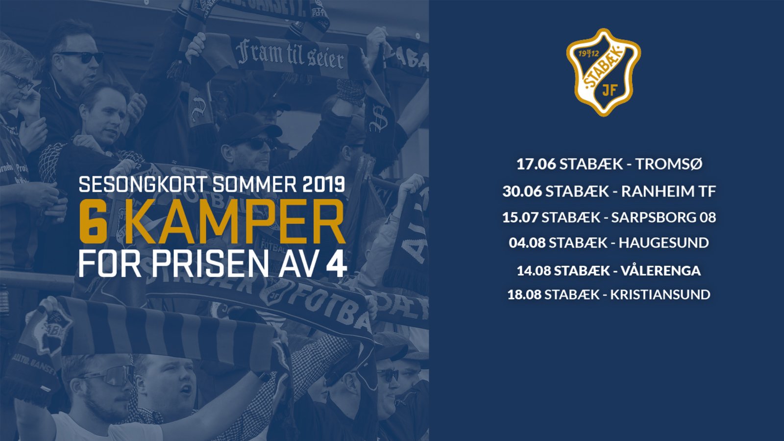 I løpet av skolens sommerferie spiller Stabæk seks hjemmekamper i Eliteserien, kun en av de spilles i «fellesferien», så her er det mange muligheter til å få med seg sommerens Eliteserie-kamper. Stabæk har derfor satt sammen et sommersesongkort for de seks kampene og gir en god rabatt på kortet, siden du får seks kamper til prisen av fire. Årets lokalderby, mot Vålerenga, onsdag 14. august, er en av godbitene.