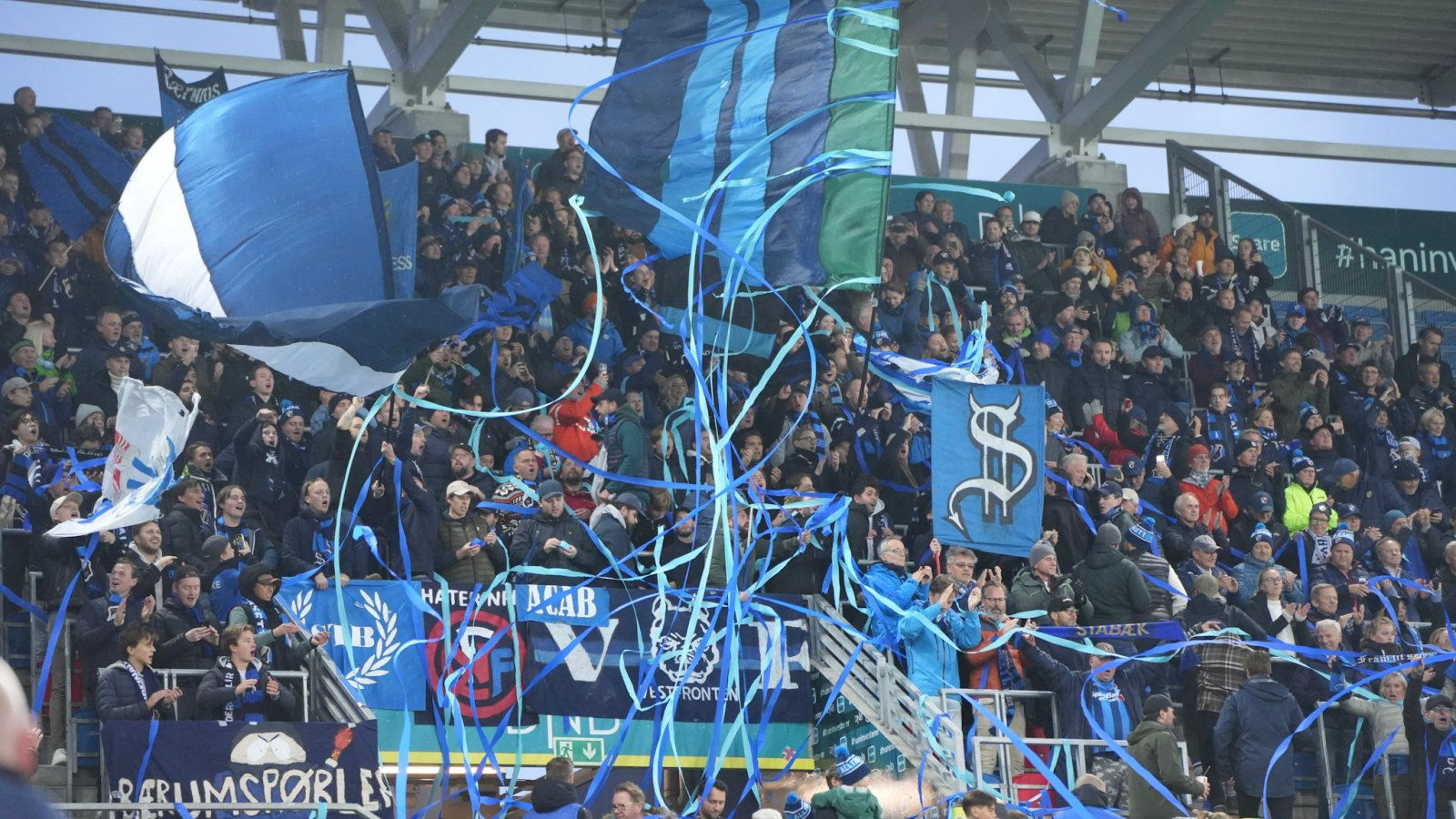 Våre blaa supportere lagde strålende stemning fra start til slutt! Nærmere 700 supportere fylte bortefeltseksjonen på Intility Arena, og skapte perfekt ramme for en "hjemmekamp"-følelse for Stabæk-spillerne.