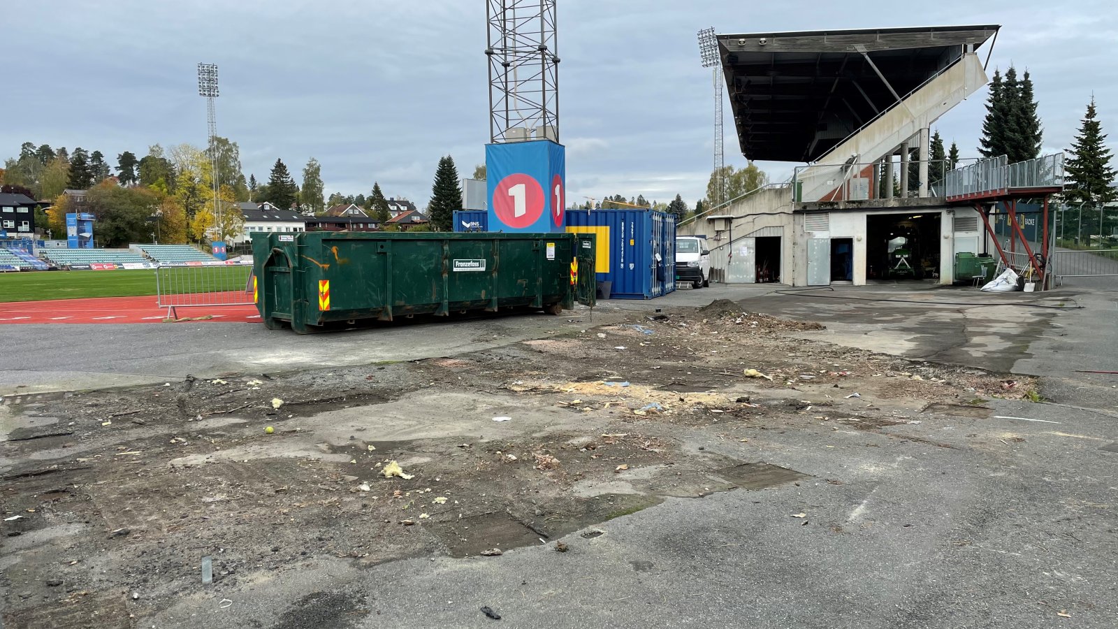 Siste restene av de gamle brakkene på Nadderud er nå tatt bort. Over helgen starter arbeidet med å få på plass nye brakker på samme sted.