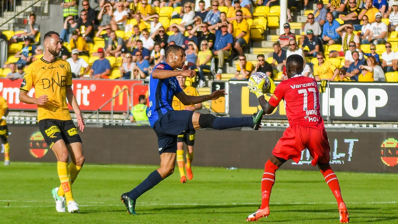 Ahmed El Amrani kom på banen og holdt på å score i sin første involvering. Fra 8 meter fikk han skutt. Ballen gikk via hansken til keeper, og i bue like over tverrliggeren.