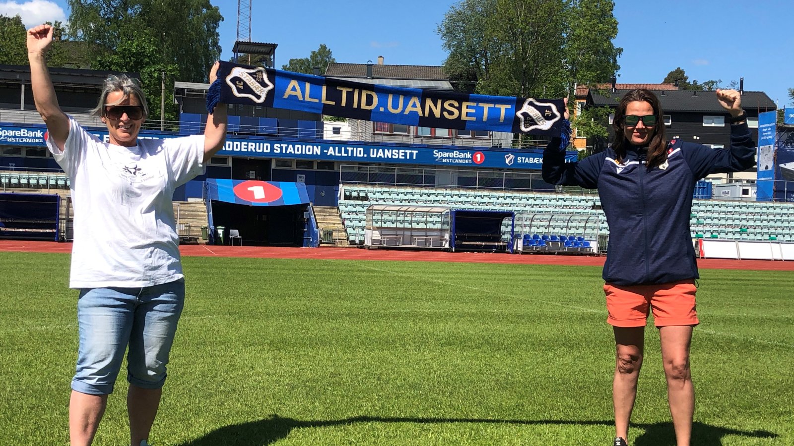Kirsti smiler i sola på Nadderud. Samarbeidet med klubben har vært i stadig utvikling, til felles glede og nytte.