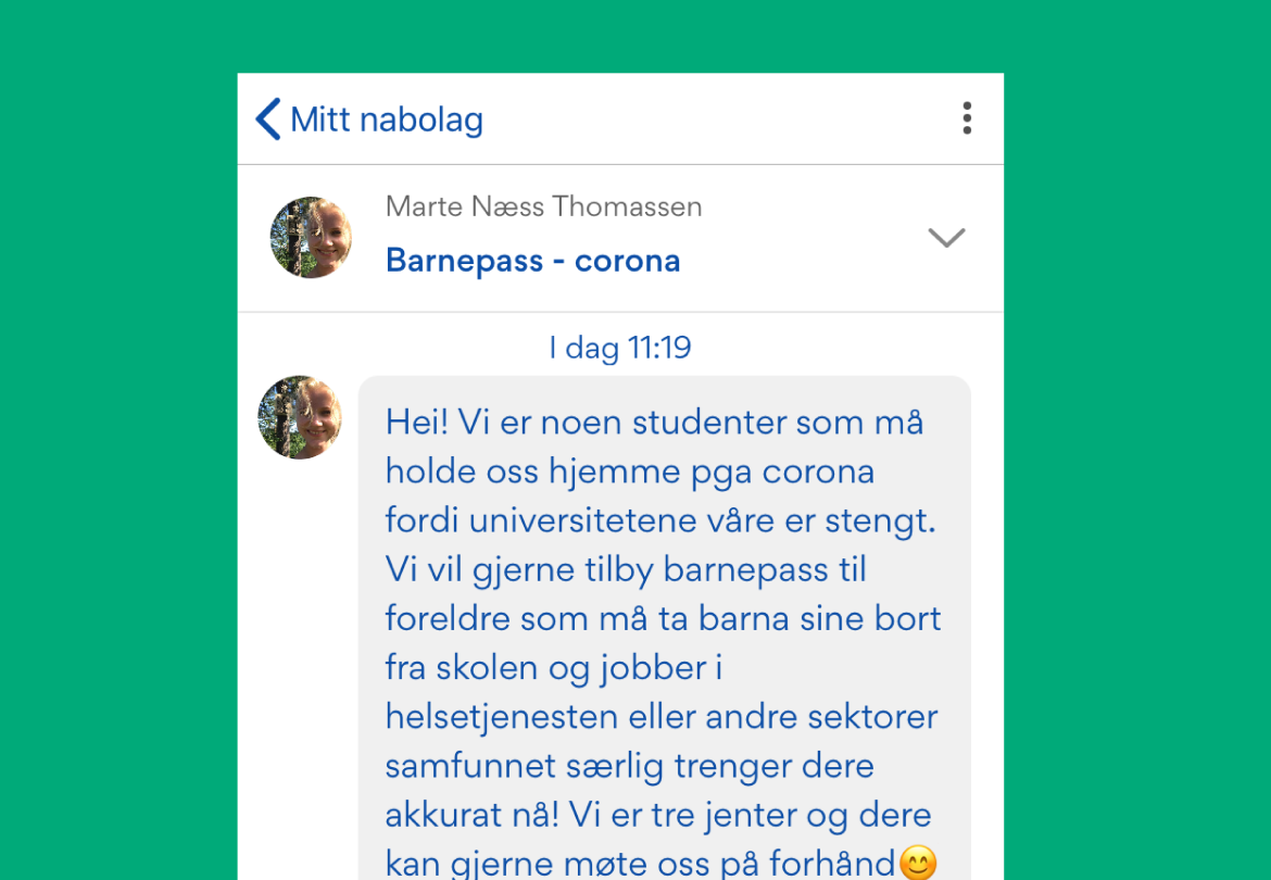I disse korona-dager er Nabohjelp en super tjeneste for å få eller gi bistand til forskjellige ting.