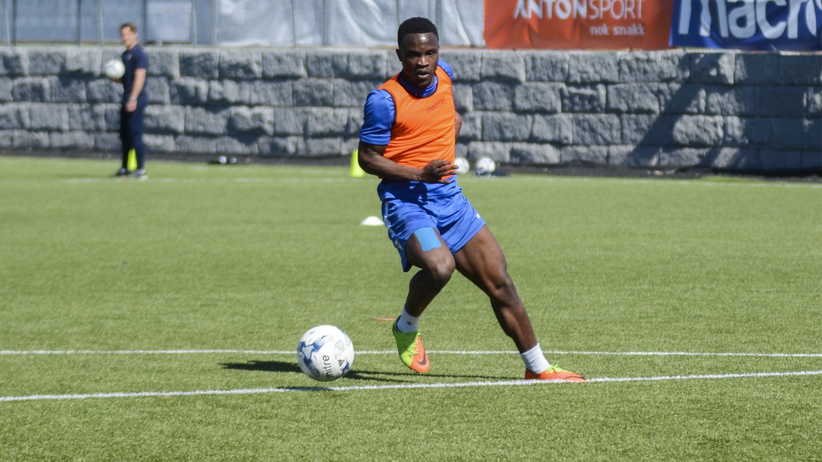 Raymond Gyasi nærmer seg debuten i blaa drakt og gjør stadige fremskritt etter å ha slitt med en hamstringskade. Nederlenderen er nå i tilnærmet full trening på Nadderud.