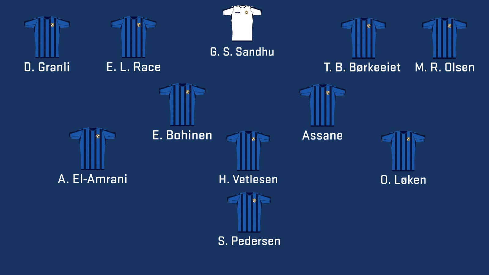 Gurpreet Singh Sandhu, Daniel Granli, Edvard Race, Tobias Børkeeiet, Morten Renå Olsen, Emil Bohinen, Assane, Ahmed El-Amrani, Hugo Vetlesen, Oskar Løken og Sebatian Pedersen.