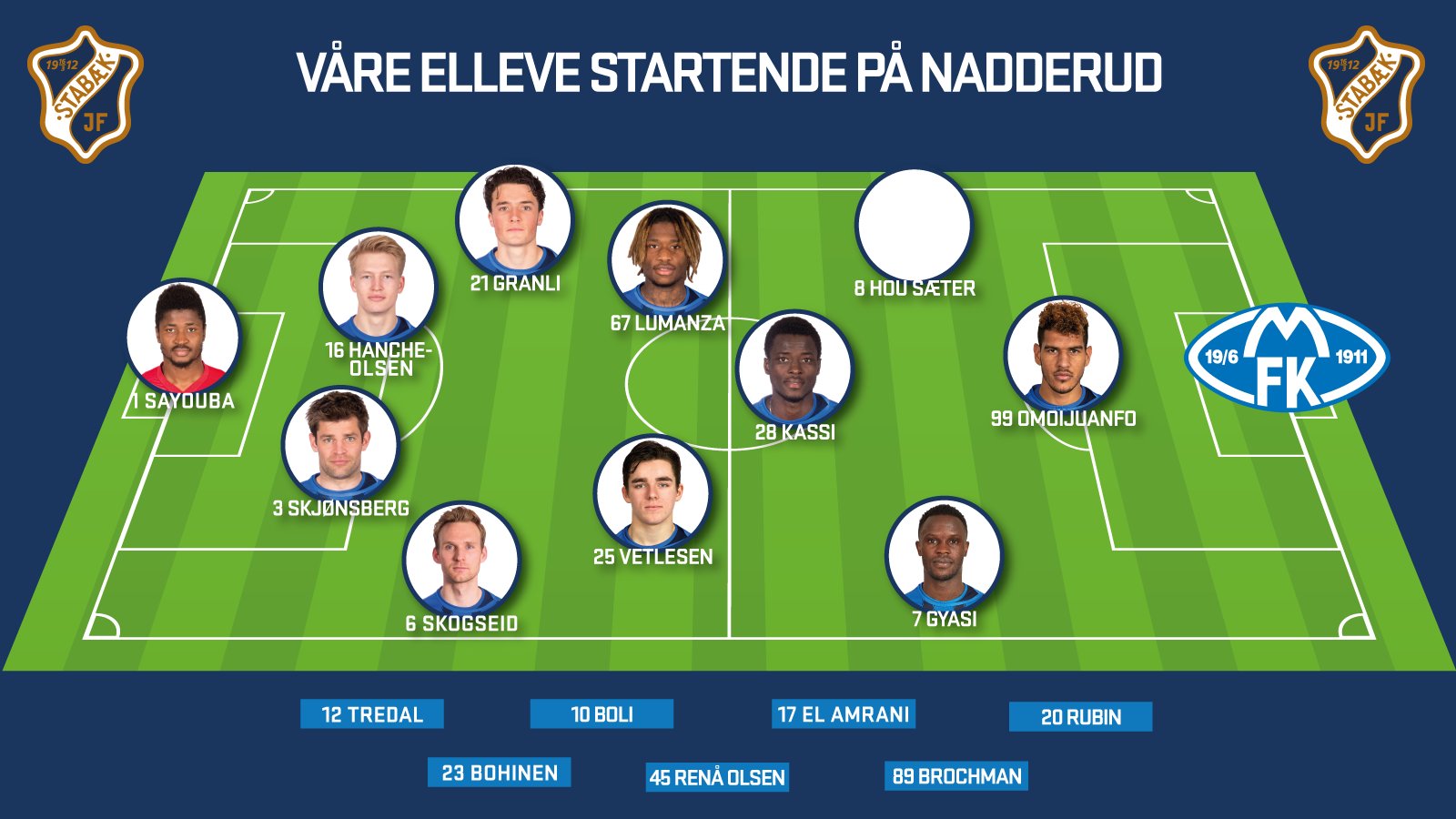 Innbyttere: Jacob, Øvretveit Tredal, Ahmed El-Amrani, Emil Bohinen, Tonny Brochmann, Franck Boli, Morten Renå Olsen, Rubio Rubin