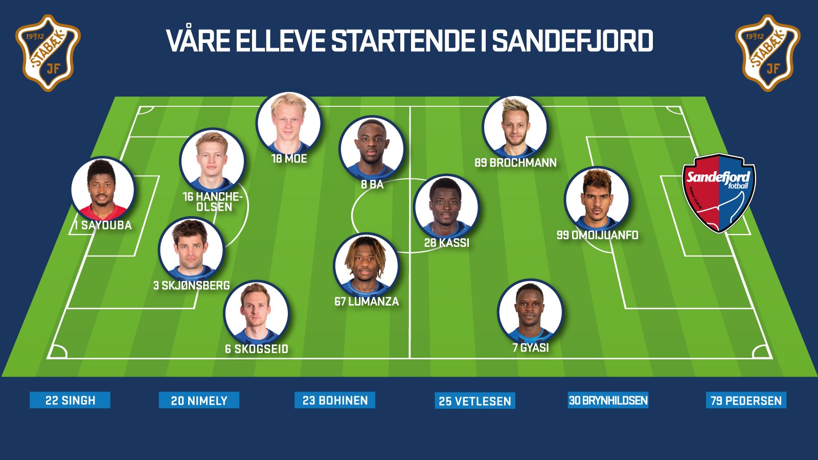 Disse starter mot Sandefjord