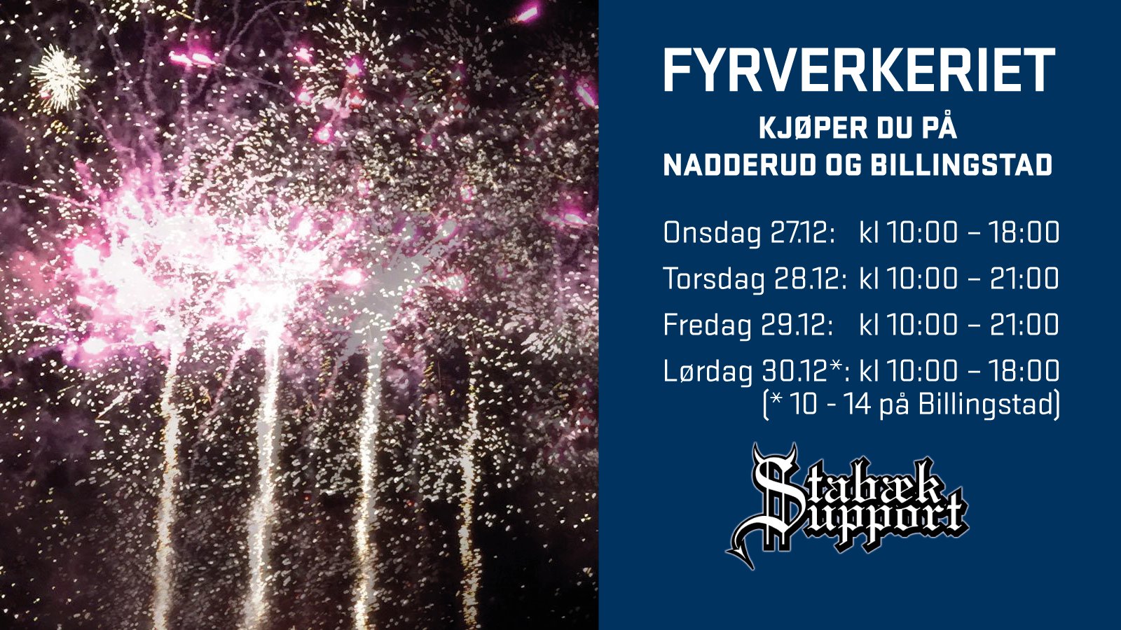 Trofaste supportere trosser vær og dropper juletilstelninger år etter år. Stabæk Suppport minner om at folk bør handle fyrverkeri de første dagene i romjulen for å unngå de store køene (se åpningstidene nederst i saken). Nyttårsaften holdes utsalg av fyrverkeri stengt, da lokale bestemmelser begrenser salget.