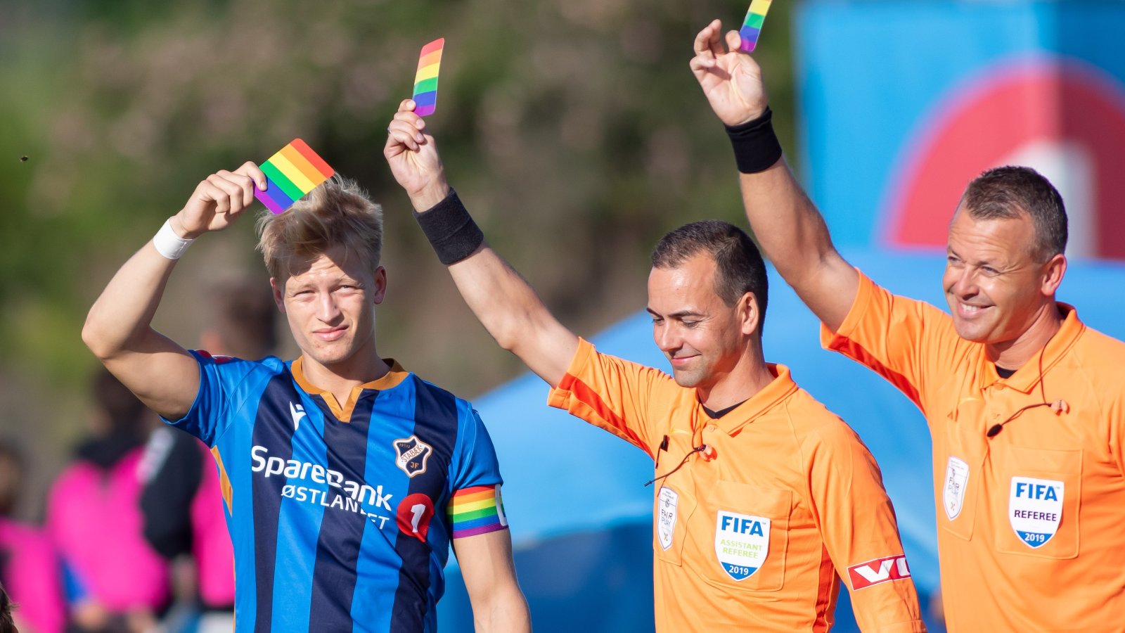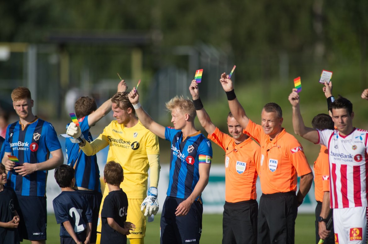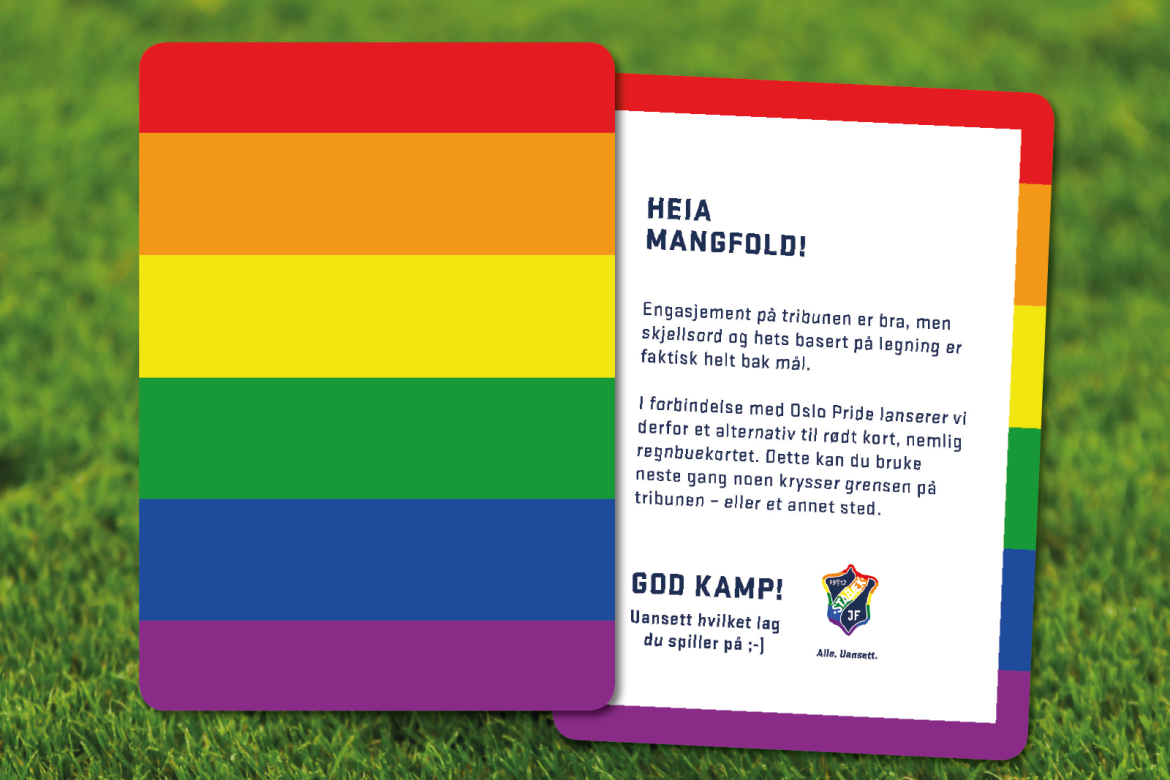 I forbindelse med Oslo Pride har vi derfor lansert et alternativ til rødt kort, nemlig regnbuekortet. Dette kan du bruke neste gang noen krysser grensen på tribunen - eller et annet sted."