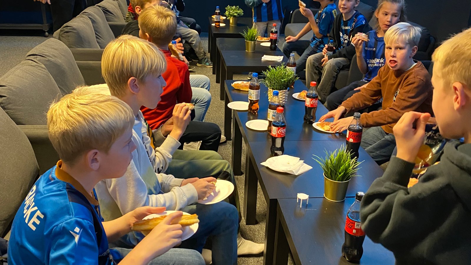 Lokalene var pyntet i blaatt og etter en kort informasjon bar det rett inn i gamingrommene der alle PS5 – konsollenen var satt opp med kampen Stabæk – Molde som en opptakt til søndagens kamp på Nadderud.