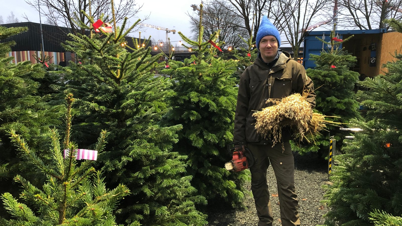 - Det finnes vel ikke et mer utpreget sesongarbeid enn det å selge juletrær, men det er en veldig hyggelig og viktig ekstrajobb for meg. Jeg er spesielt glad for denne jobben i år når det aller meste er avlyst, sier Øystein, som i normale tider reiser fast med velkjente Valkyrien Allstars.