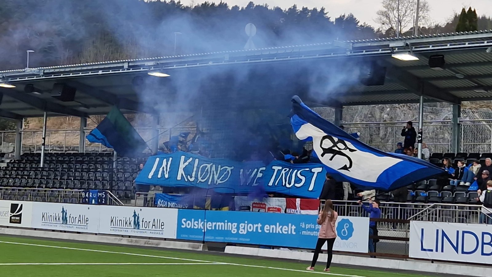 "IN KJØNØ WE TRUST", stod det med store bokstaver på banneret som prydet bortetribunen, før avspark mellom Åsane og Stabæk. Eirik Kjønø satte stor pris på gesten. Video
