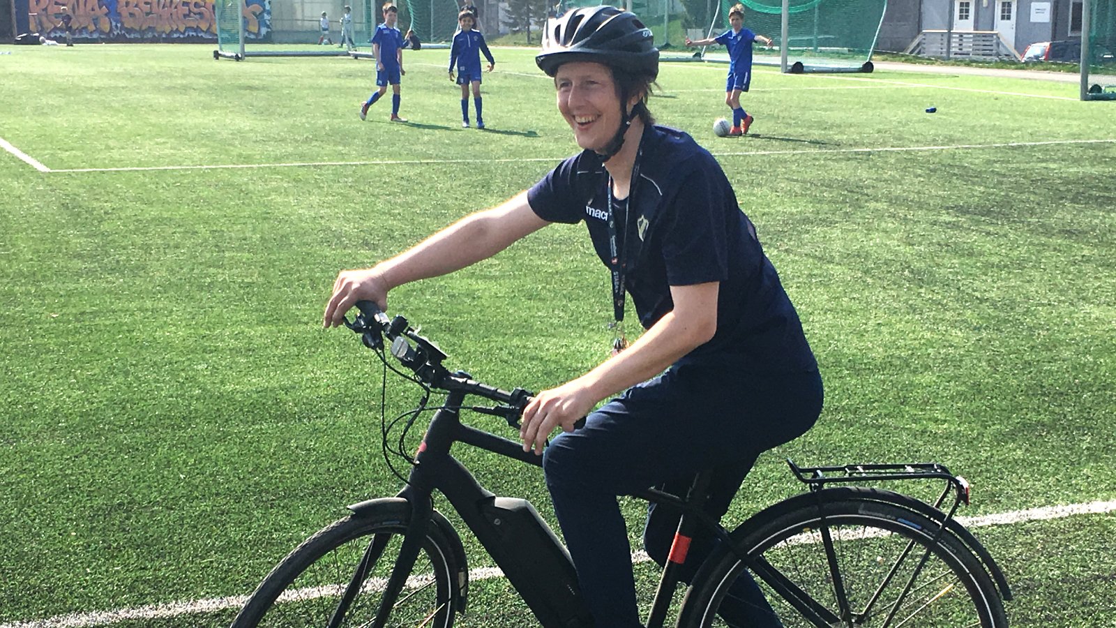 Daniels hverdag har blitt langt enklere - og morsomere - etter at Anton Sport på Bekkestua bidro sterkt til at klubben kunne skaffe seg en El-sykkel. Fra å gå, løpe og busse mellom baner og anlegg rundt om i kommunen har Daniels travle arbeidsdag blitt mye lettere å planlegge.