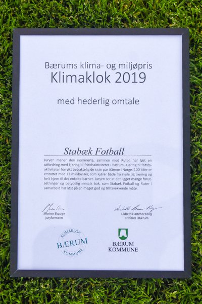 Stabæk Fotball var en av fire nominerte til Bærum kommunes miljøpris.