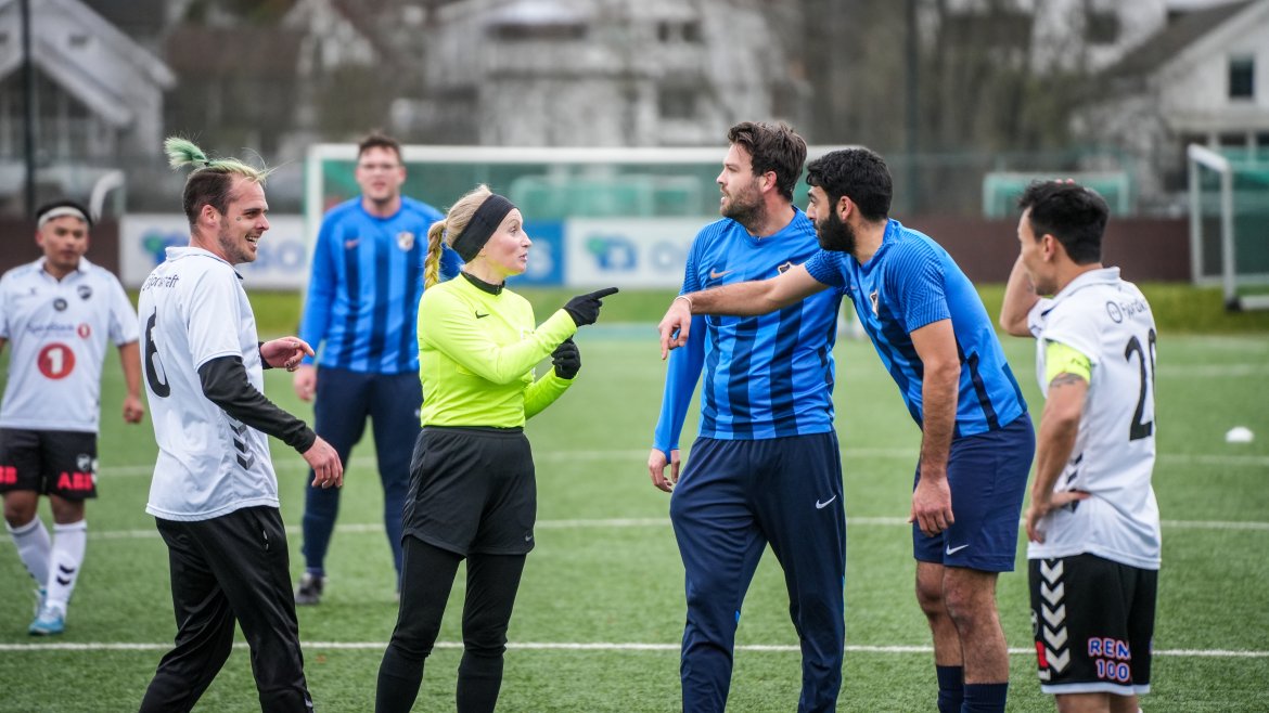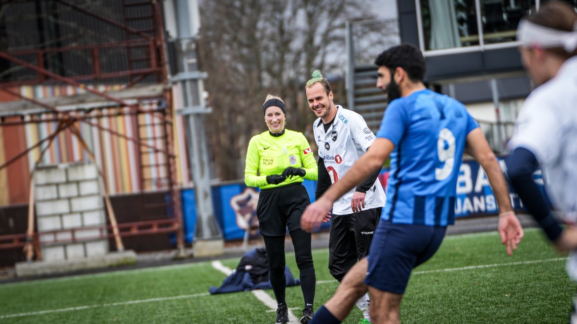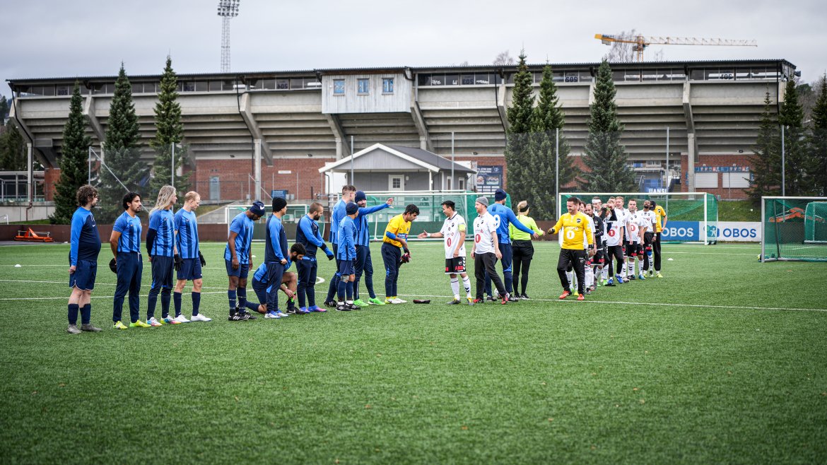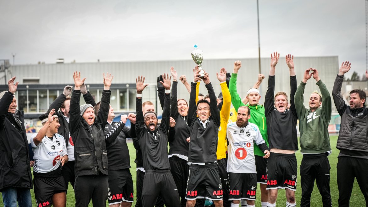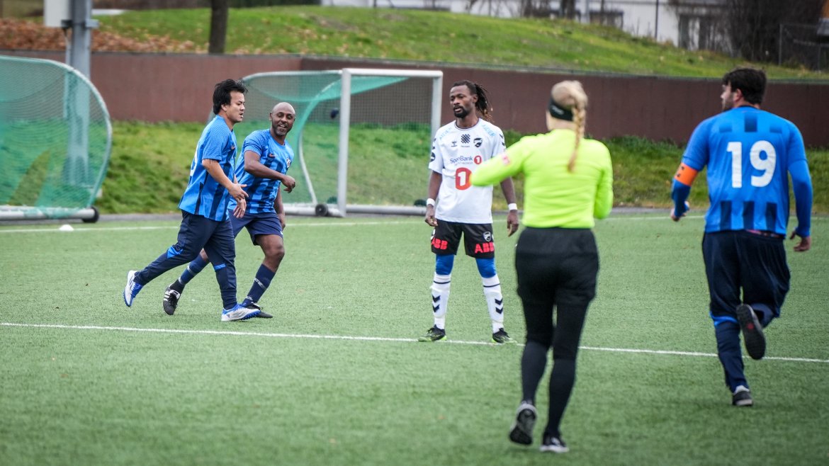 Det ble en meget artig fotballkamp med sjanser til begge lag i bøtter og spann. Jevnt og tett slik en slik batalje skal være. Spenning og alvor, men også det gode humøret.