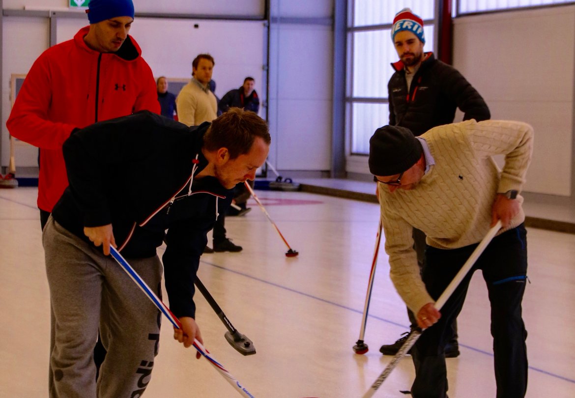 Etter en super rask teoretisk gjennomgang av Pål Trulsen, bar det rett ned på isen. Trulsen mente det holdt med en prøve sten, så var det rett på. Det var satt opp 8 lag, som ble styrt myndig rundt av Trulsen og hans hjelpere etter hvert som man tapte eller vant kamper. Finalen ble spilt mellom lag 2, The Bambies (Kristina L., Truls S., Christer N., Thomas G., Gudbrand F. og Esben H.) og lag 5, Easy Icers (Tommy S, Arne H, Kristin G. E, Tom Anders A, Fredrik S-N og Espen L). Finalen ble jevnspilt og endte uavgjort 3-3 og måtte avgjøres med en sten fra hvert lag, mann mot mann. Christer fra Energima og lag 2 satte første sten godt plantet mitt i boet og presset lå på Tommy S fra SpareBank 1 og lag 5. Det var 10 cm som skilte de to lagene i favør lag 2 og ifølge Trulsen ville lag 5 vunnet dette hvis ‘kosterne’ hadde våknet litt før.