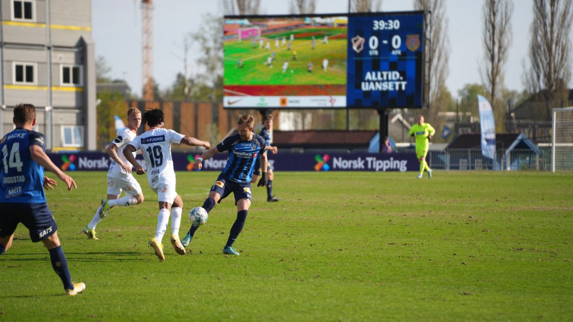 Næss skulle fyre av fra skrå vinkel, men skuddet gikk rett i hodet på Fällman som gikk ned for telling. Droppen gikk utrolig nok til Aalesund, og mens vi ventet på at Aafk skulle utføre Fair Play, valgte Grytebust å slå ballen i bakrom som var nære på å gi en Aafk-sjanse.