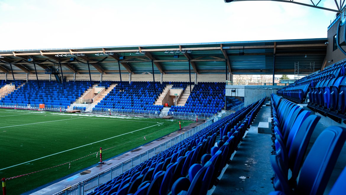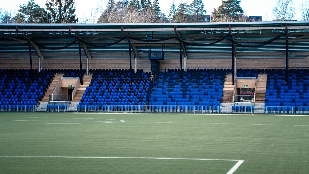 Forrige uke ble setene på Nye Nadderud montert og vi tok turen inn for å se på tribunene. Klubben